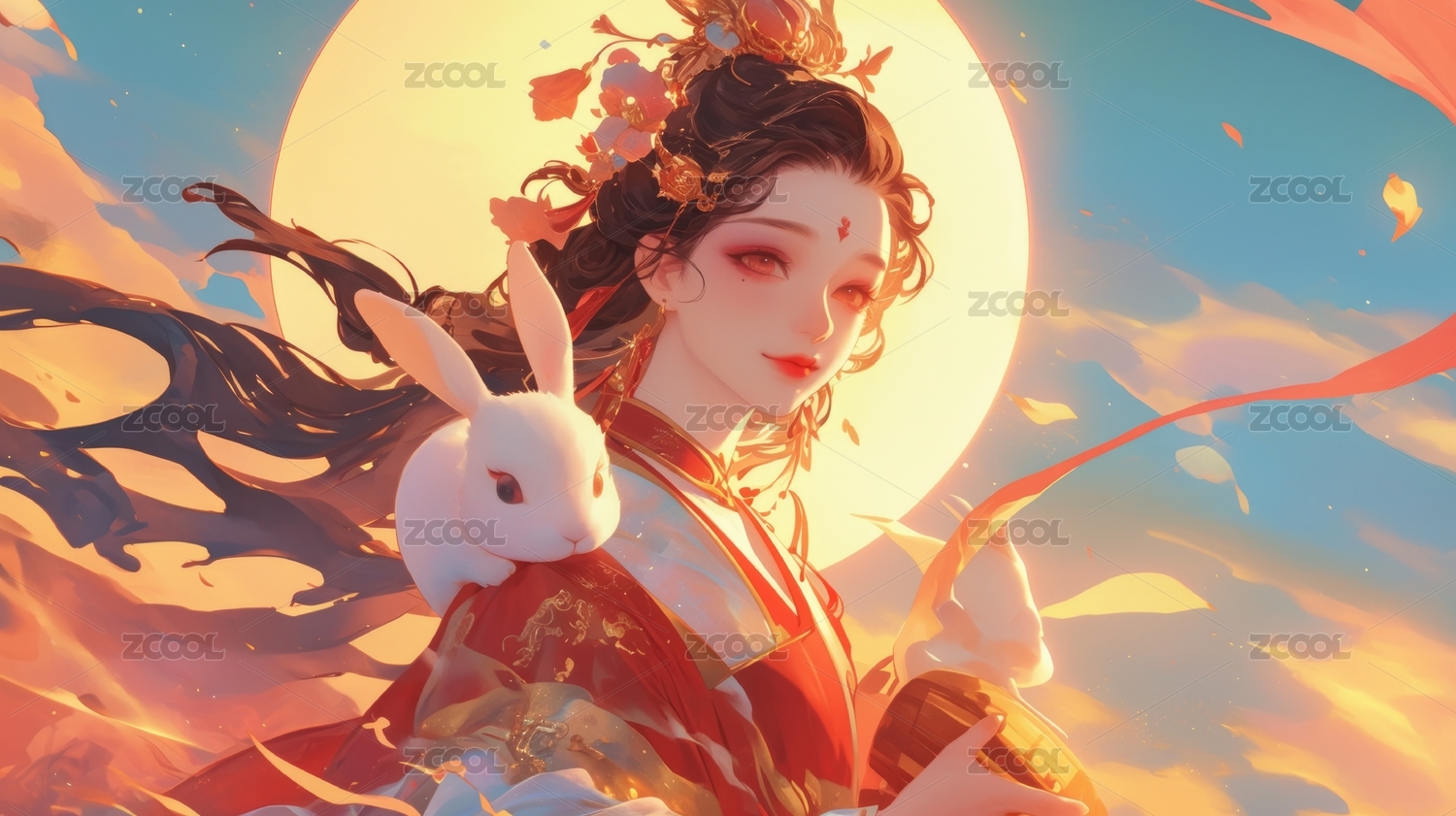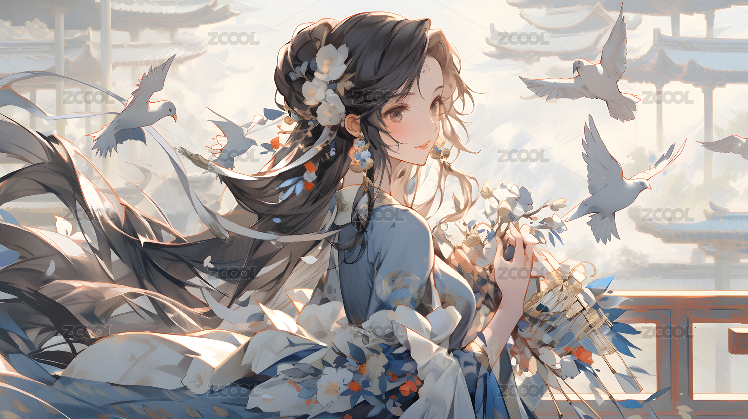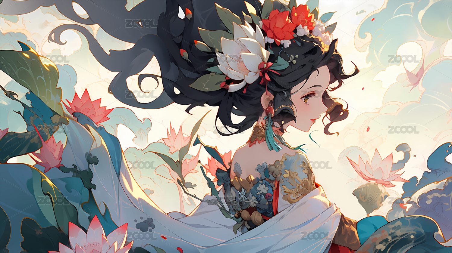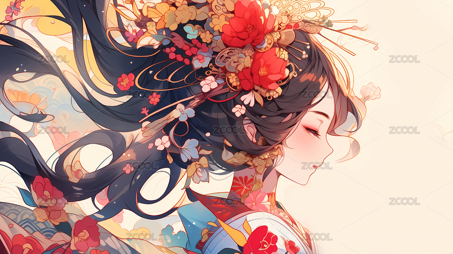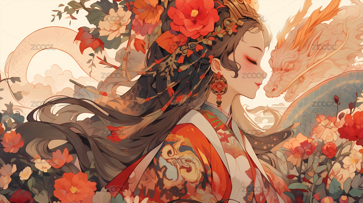 手绘,卡通,动漫,唯美,中国女孩,亚洲文化,女孩,亚洲女孩,盛装,吉祥