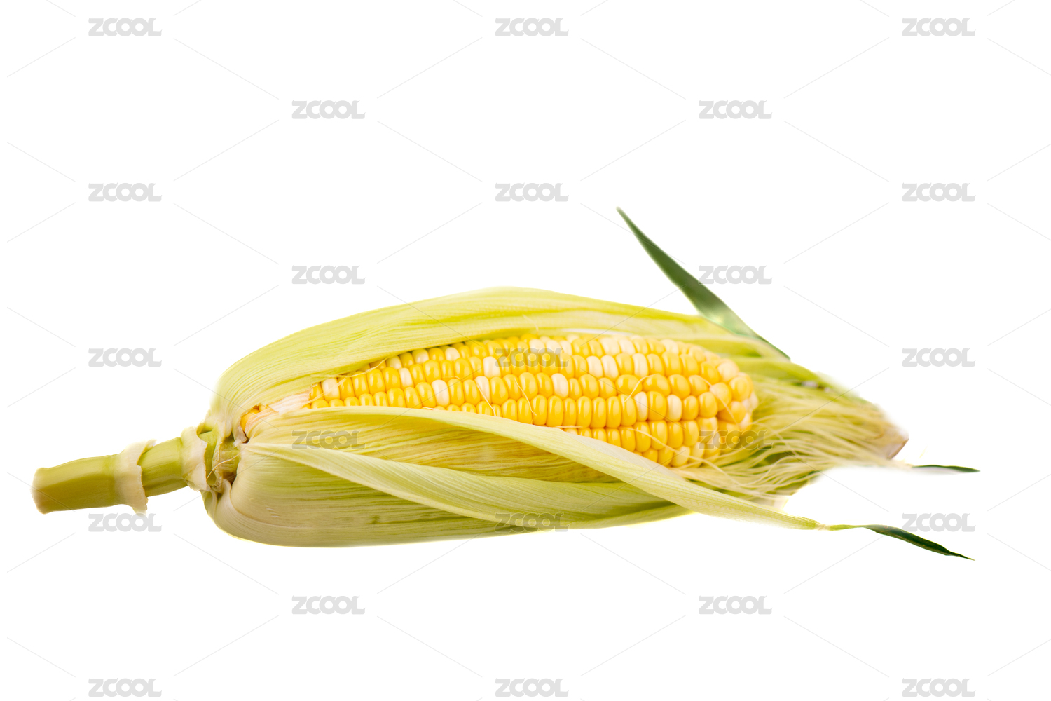 白底上撕开皮的云南玉米
