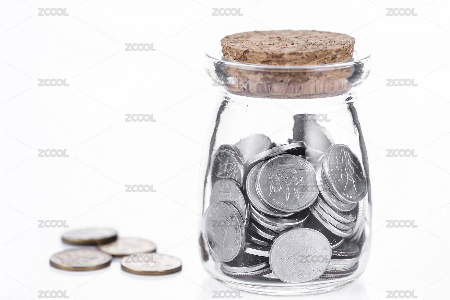 玻璃存钱罐随着时间的推移存钱存款变多升值利润收入投资理财概念
