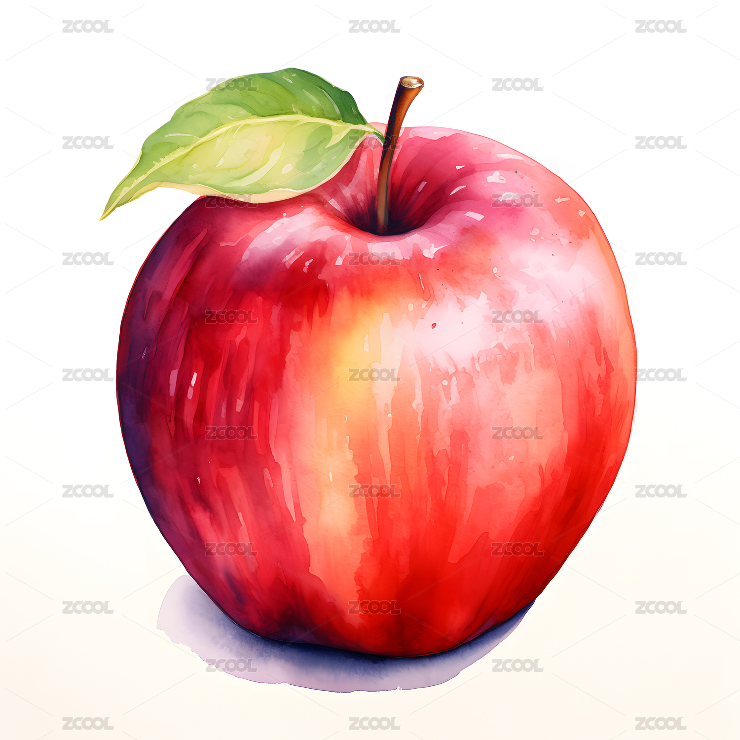 插画,手绘,美食,食物,水果,苹果,半个苹果,绿叶,成熟,有机