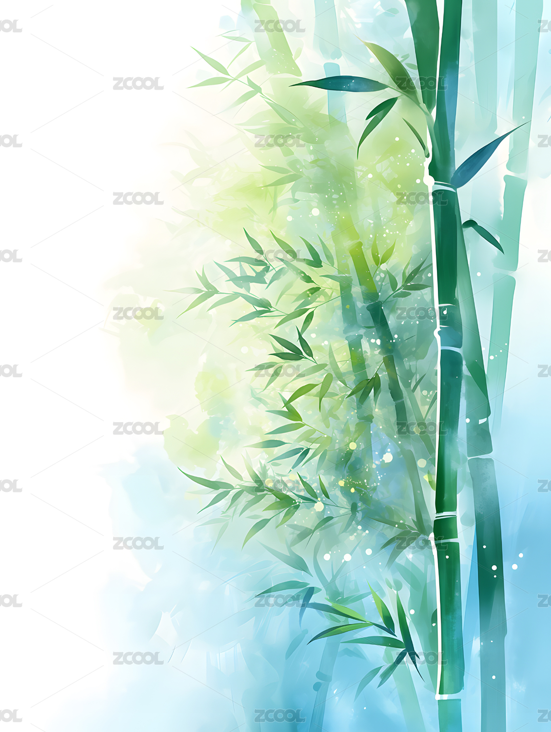 手绘竹林白色背景