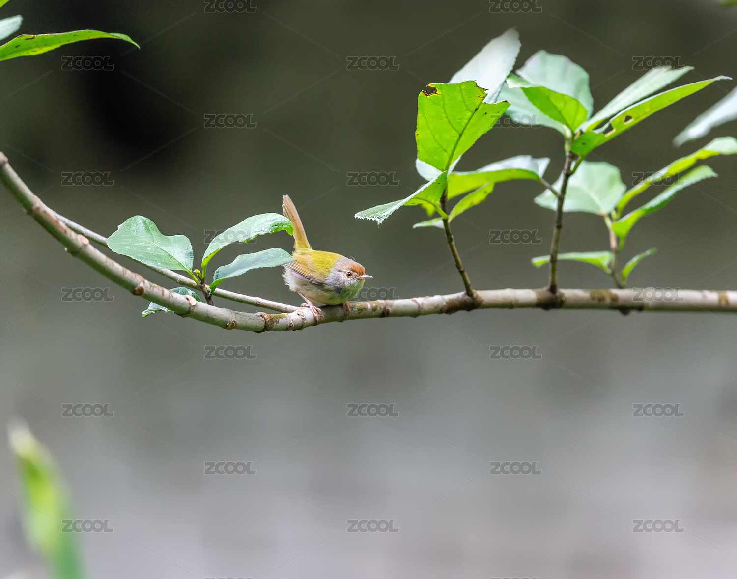 在枝叶间跳来跳去并于此觅食的长尾缝叶莺鸟