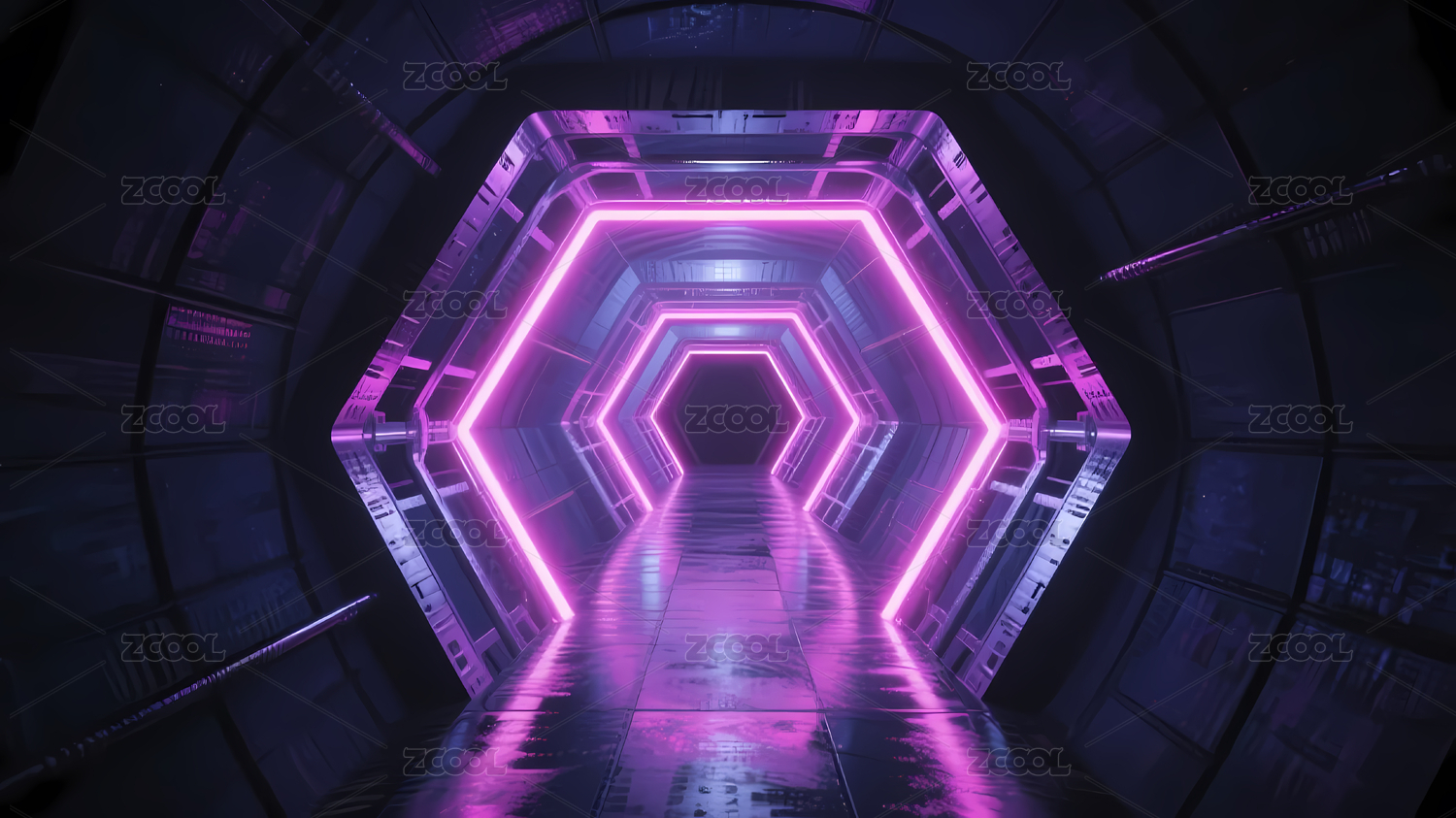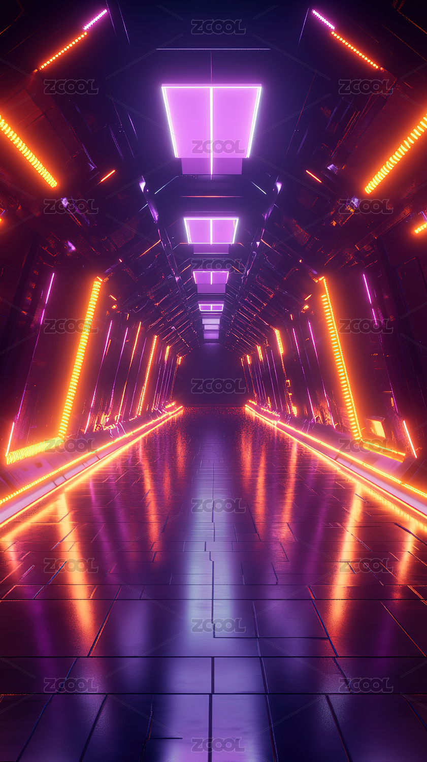 抽象霓虹灯矩阵科技感舞台,赛博朋克未来3