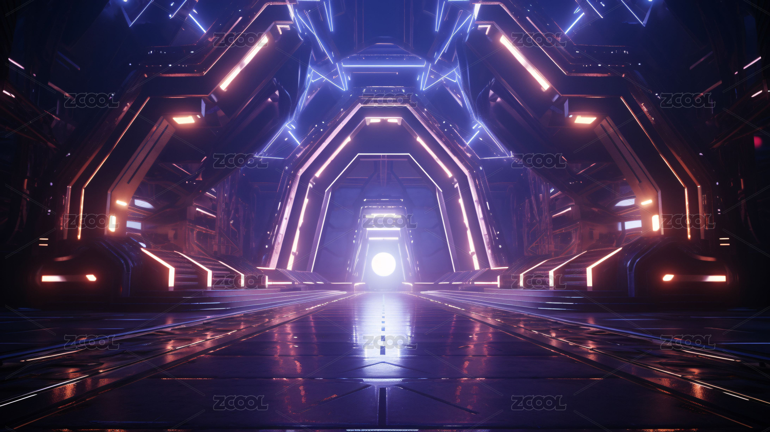 3D渲染科幻延伸空间站飞船走廊隧道背景
