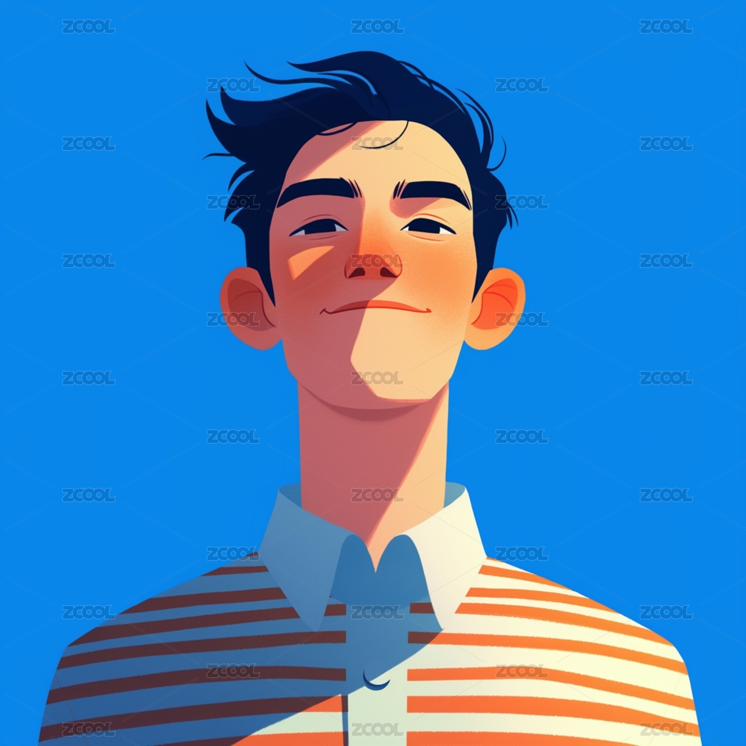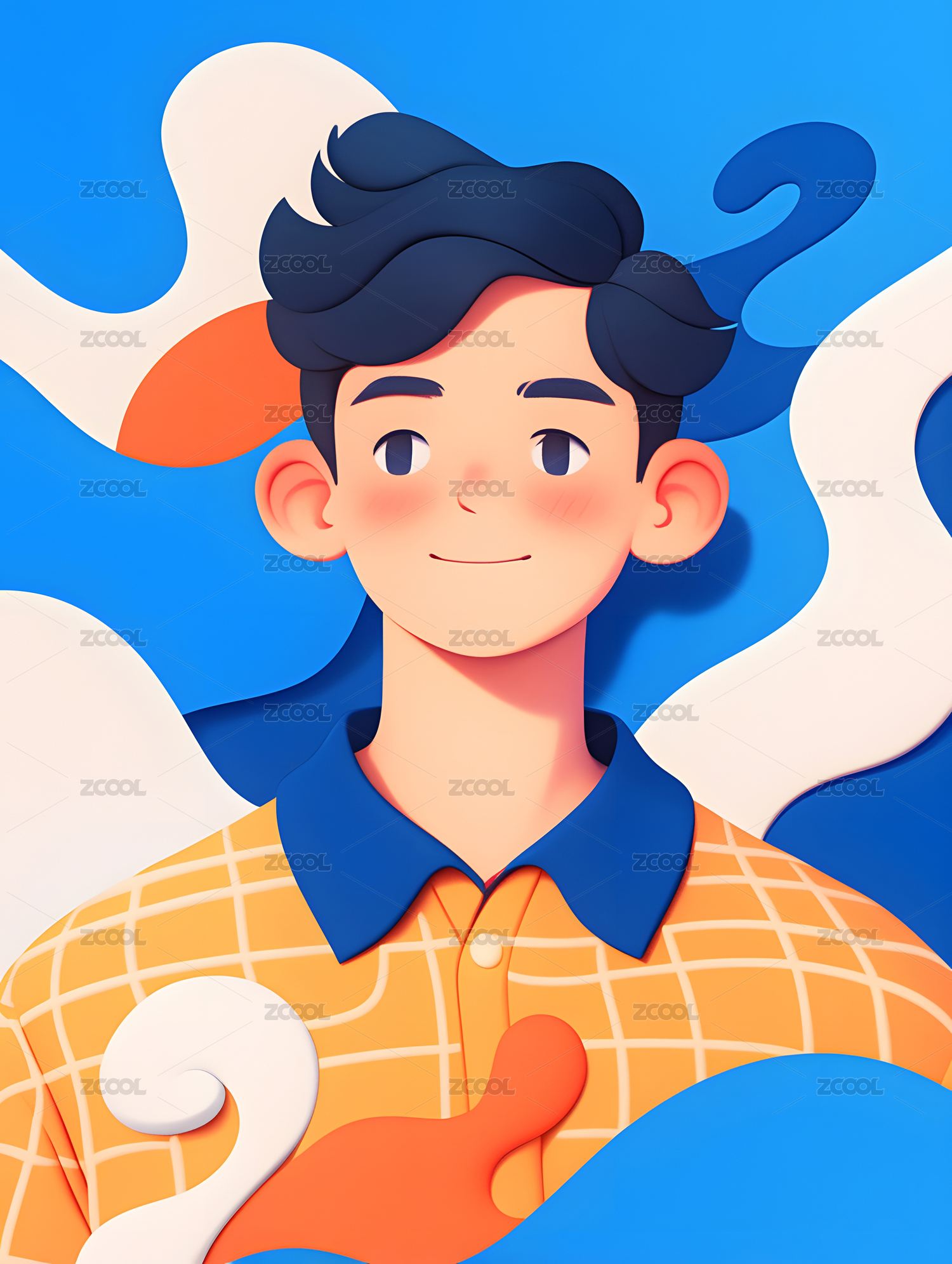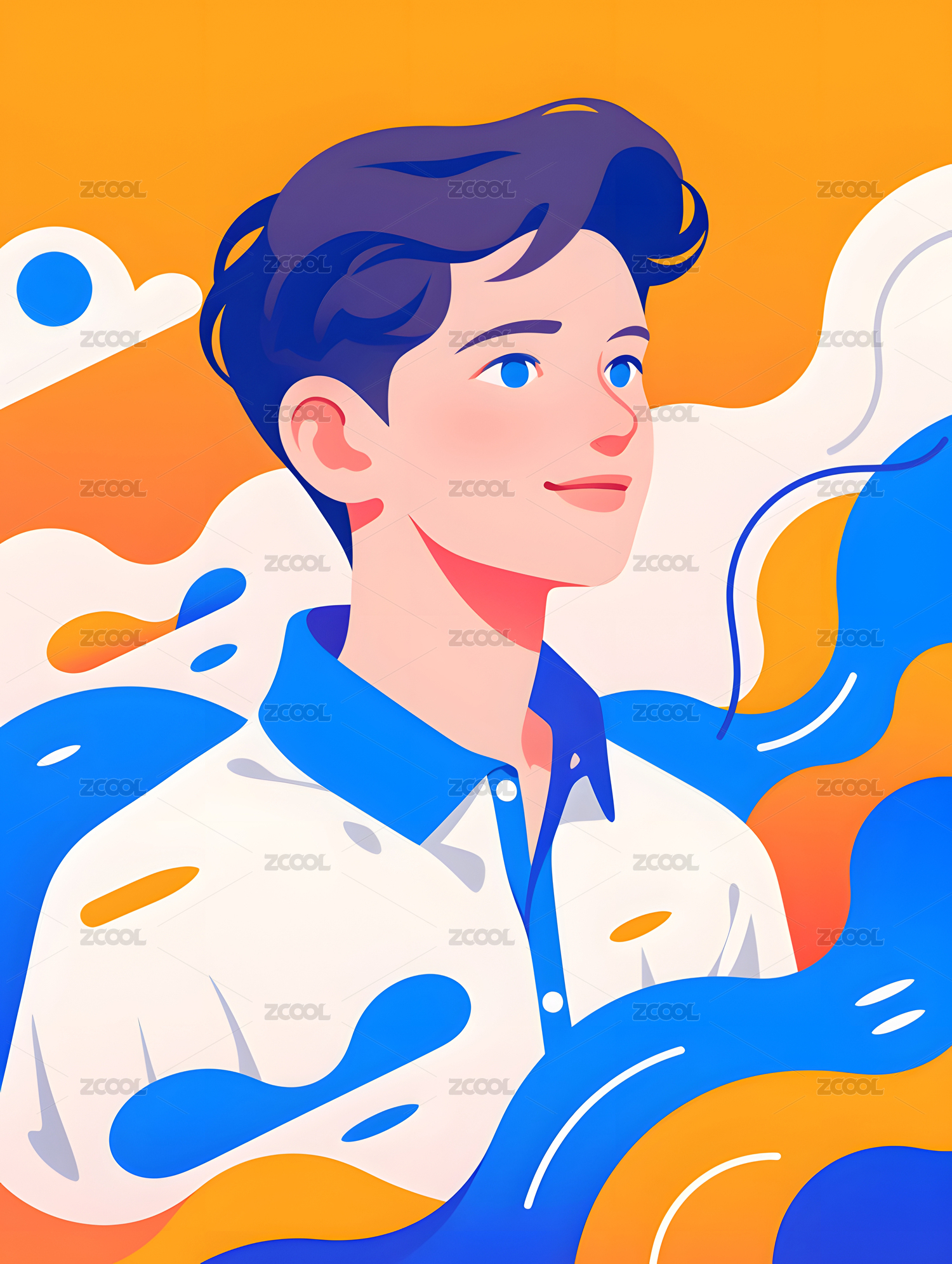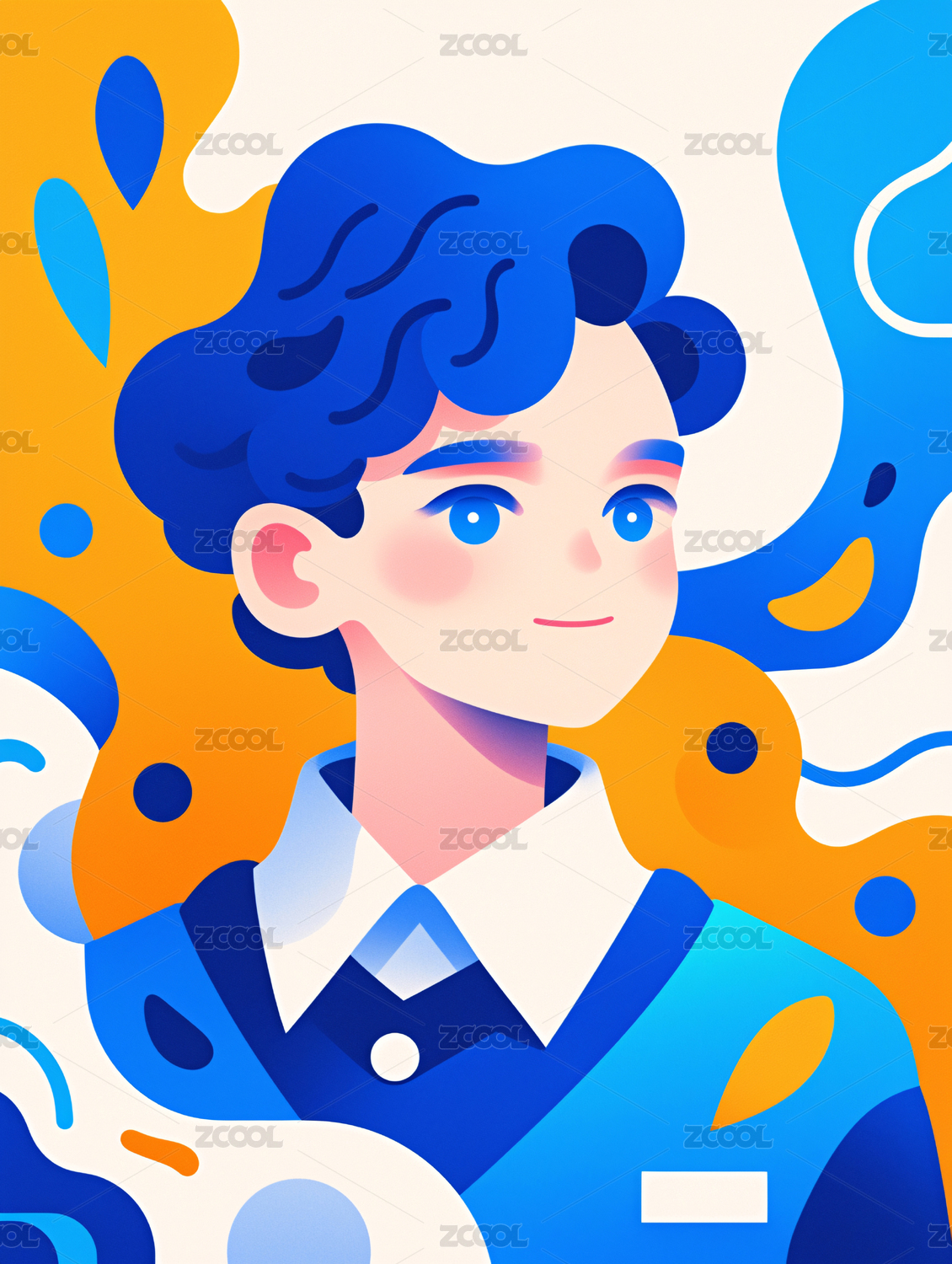 蓝色男士时尚肖像大头照矢量扁平化设计背景