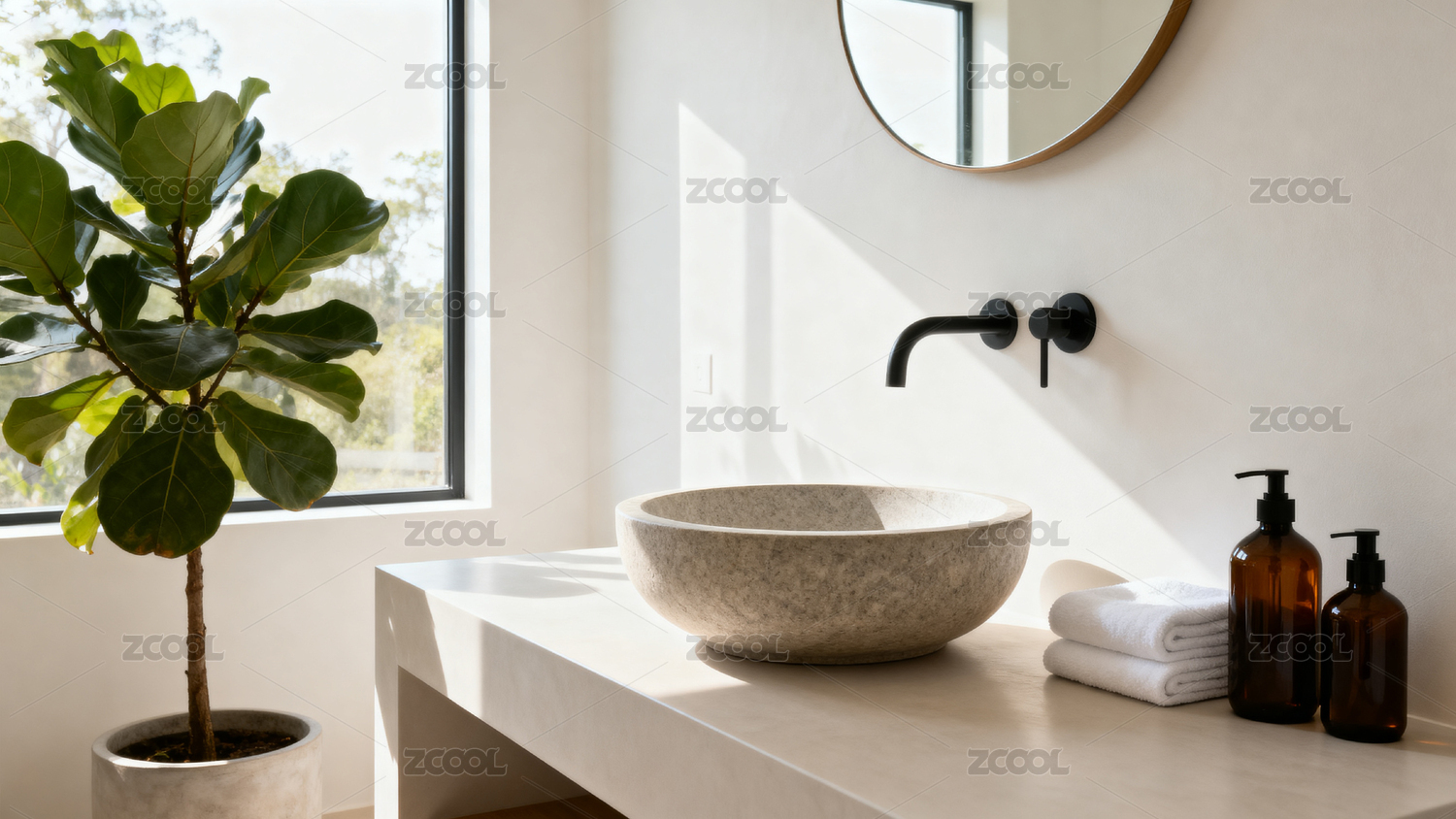 现代浴室内饰细节,现代公寓洗手台卫生间概