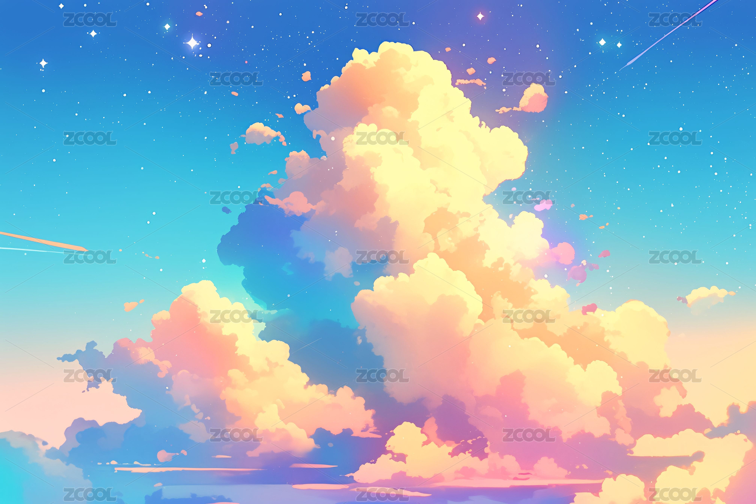 梦幻治愈云层夏天唯美天空云彩风景插画