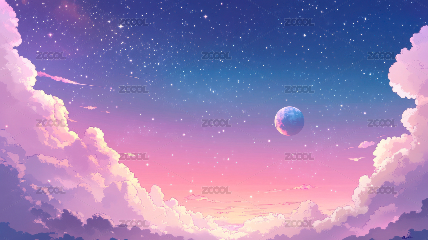 梦幻,云,节气,插画,天空,唯美,背景,户外,风景,旅游