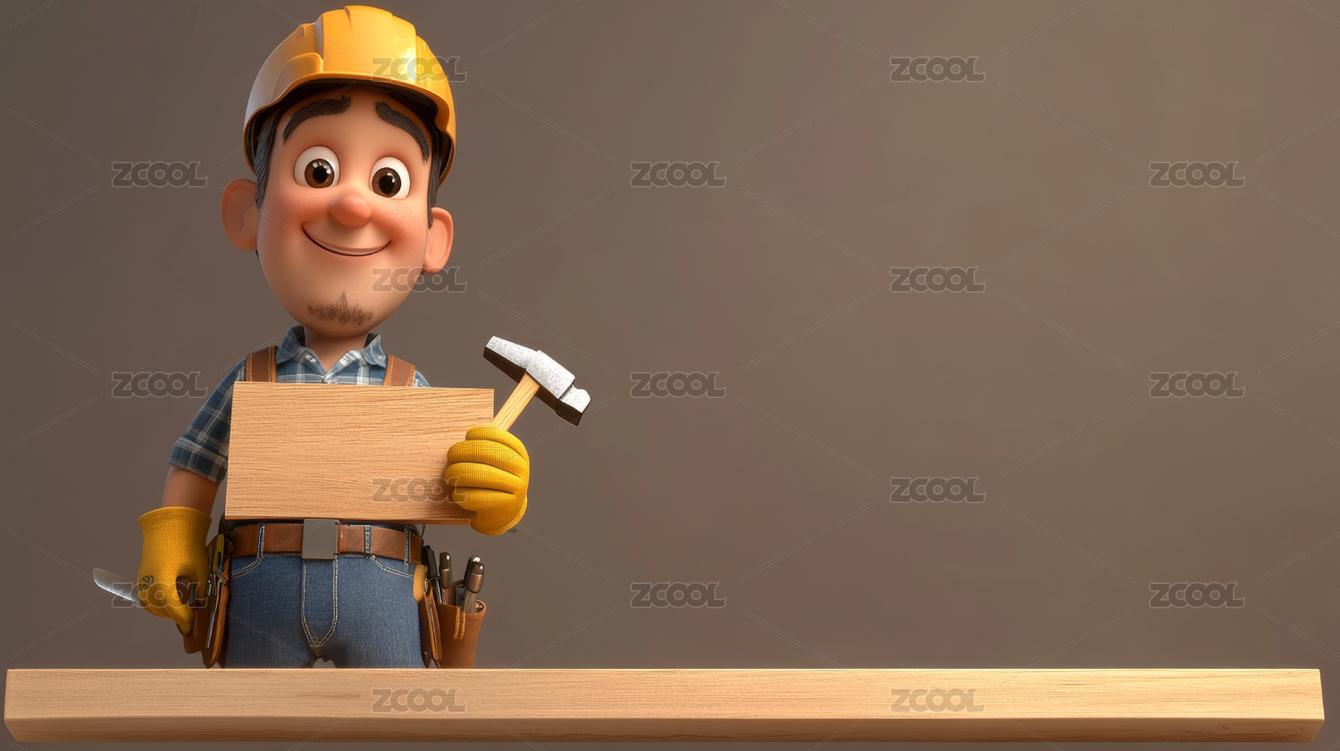 木工拿着锤子和木板