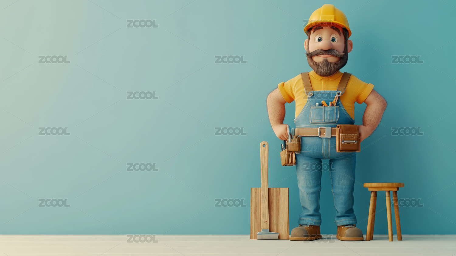 卡通人物工程师黄色背景3D渲染