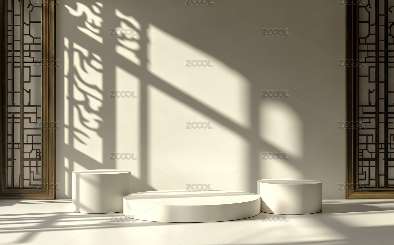 米色,中式风格,光影,圆形,产品展台,几何形状,舞台,背景,商务,底座