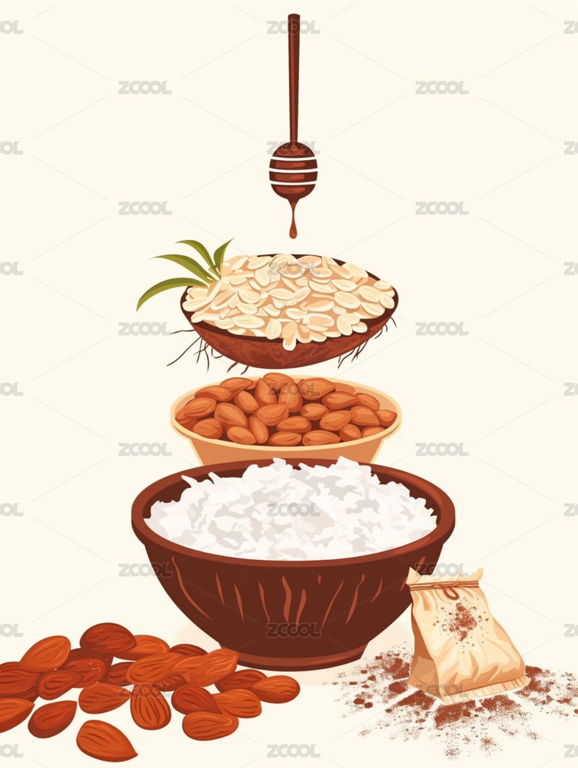 大米,扁平,插画,五谷杂粮,农作物,白米,糙米,插图,稻田,谷物