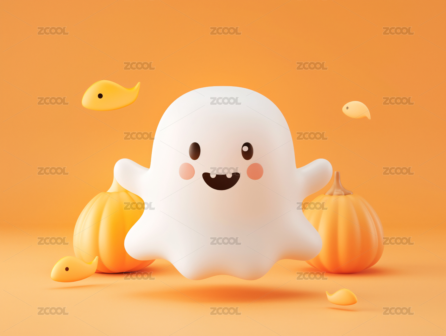 万圣节可爱幽灵南瓜3D卡通插画素材
