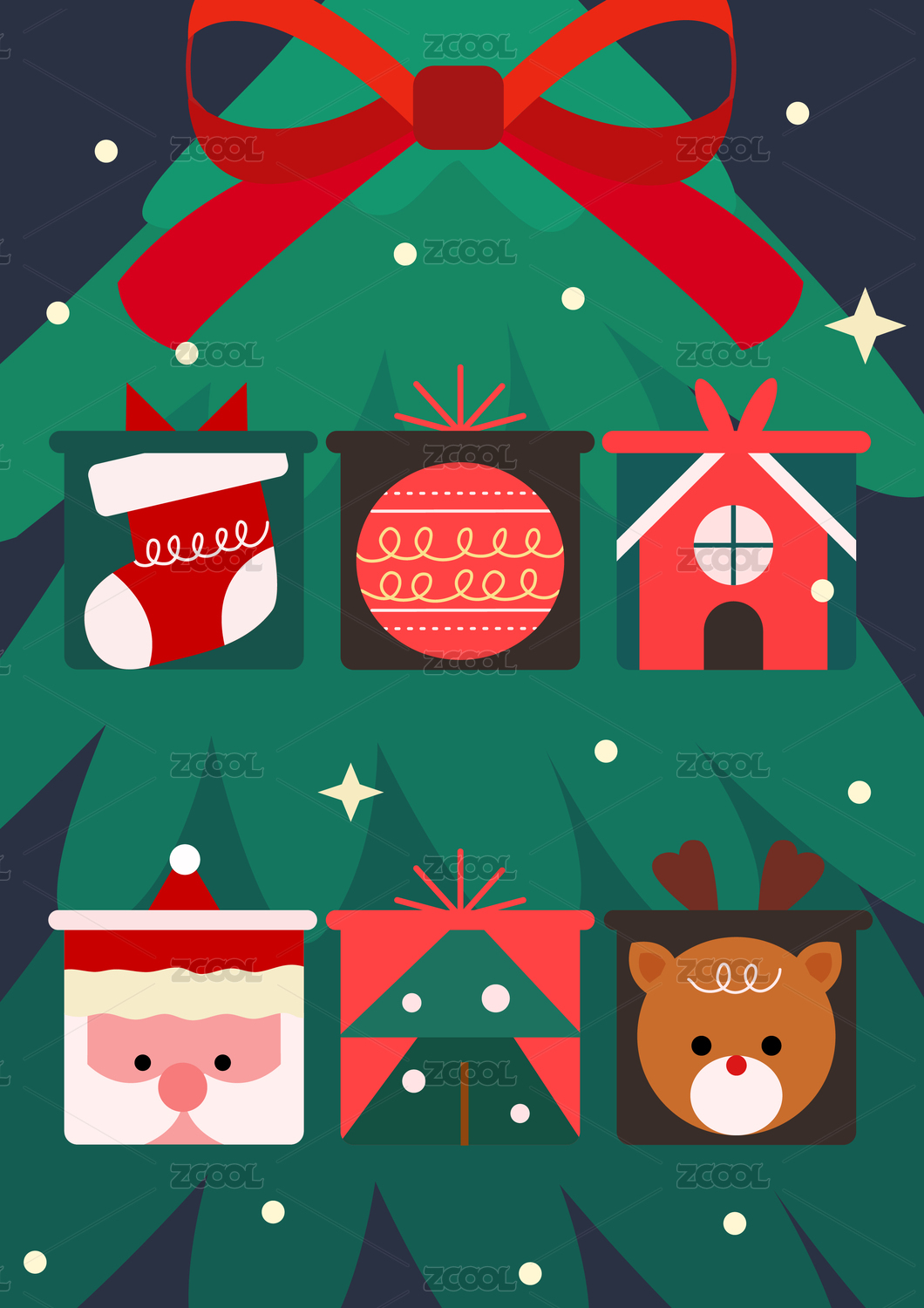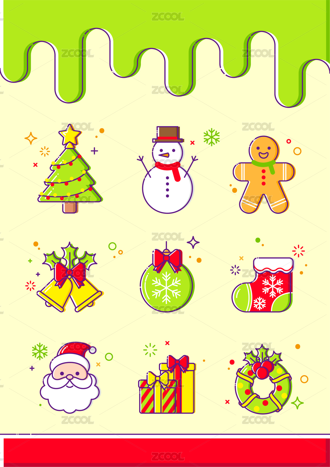 圣诞节25款元素配色图标冬天圣诞老人祝福