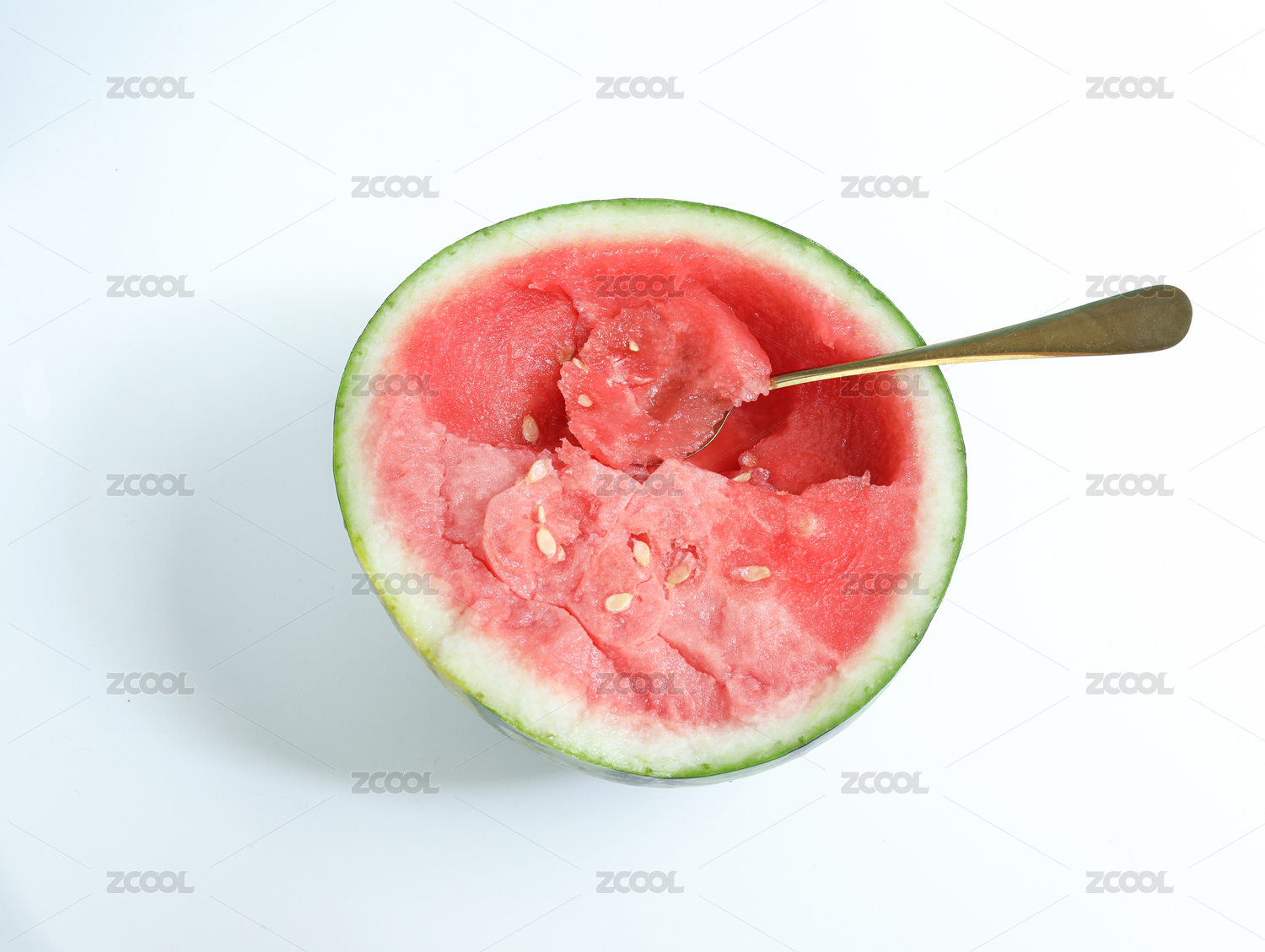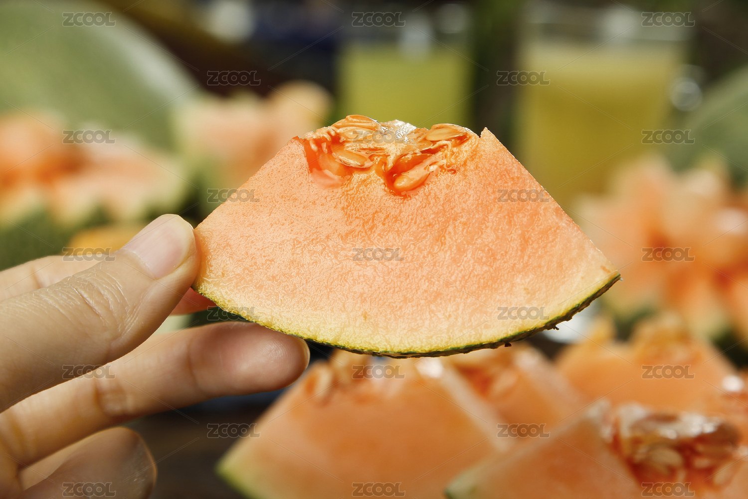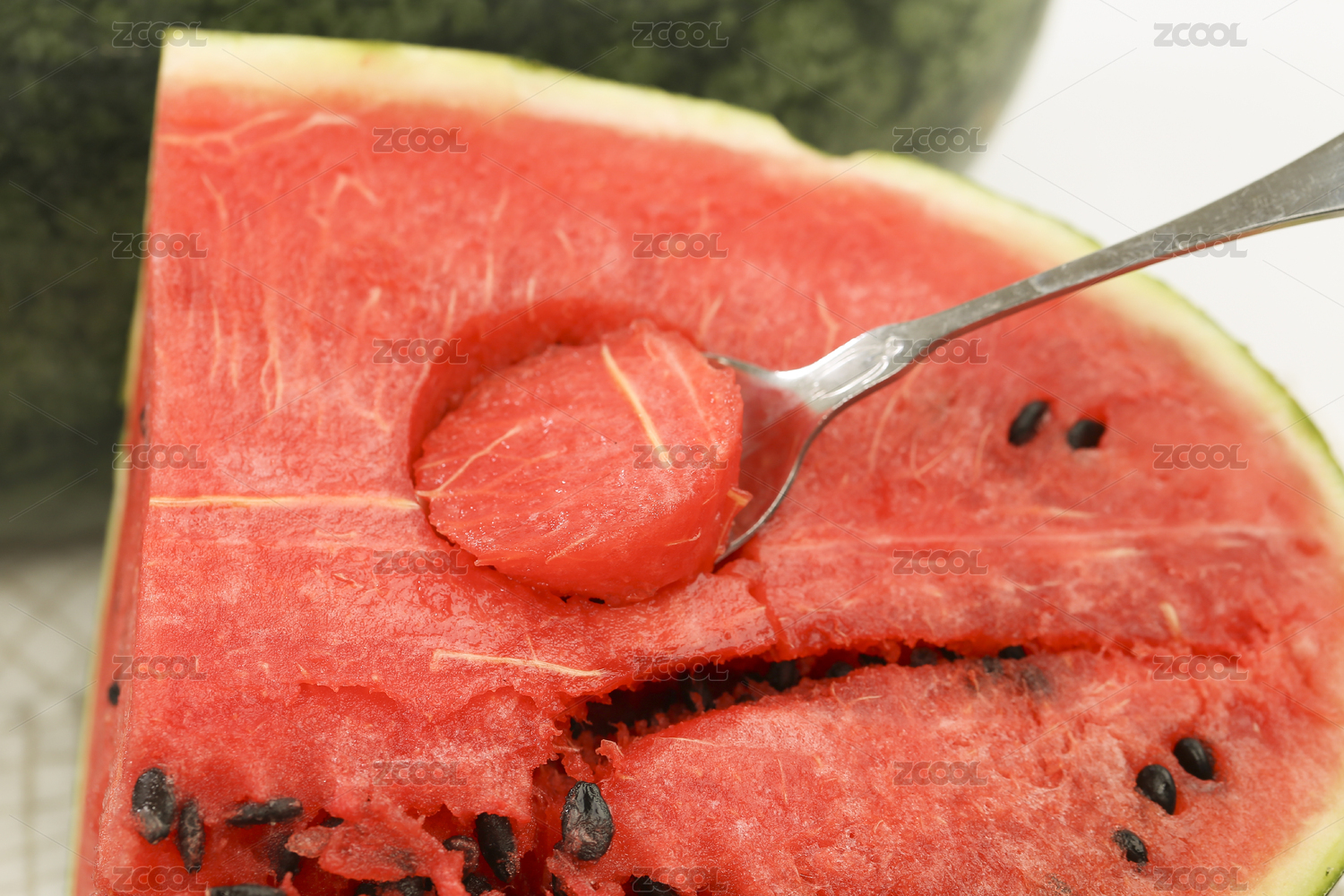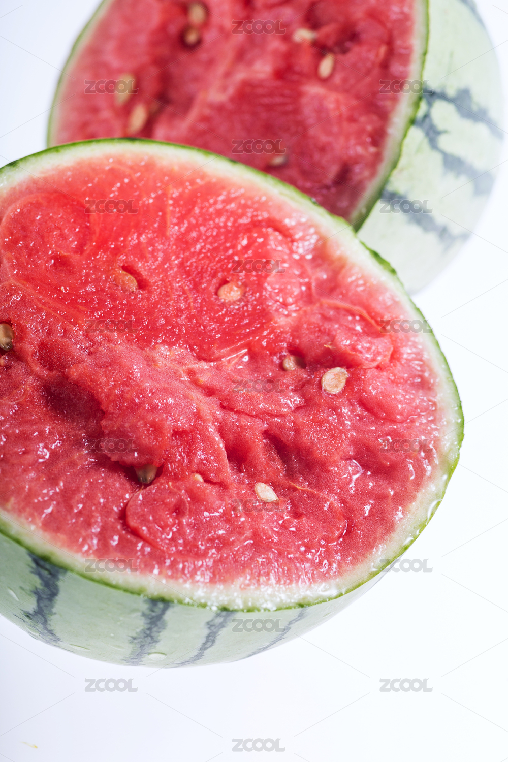 放在青花瓷盘里的多个冰镇新鲜西瓜特写