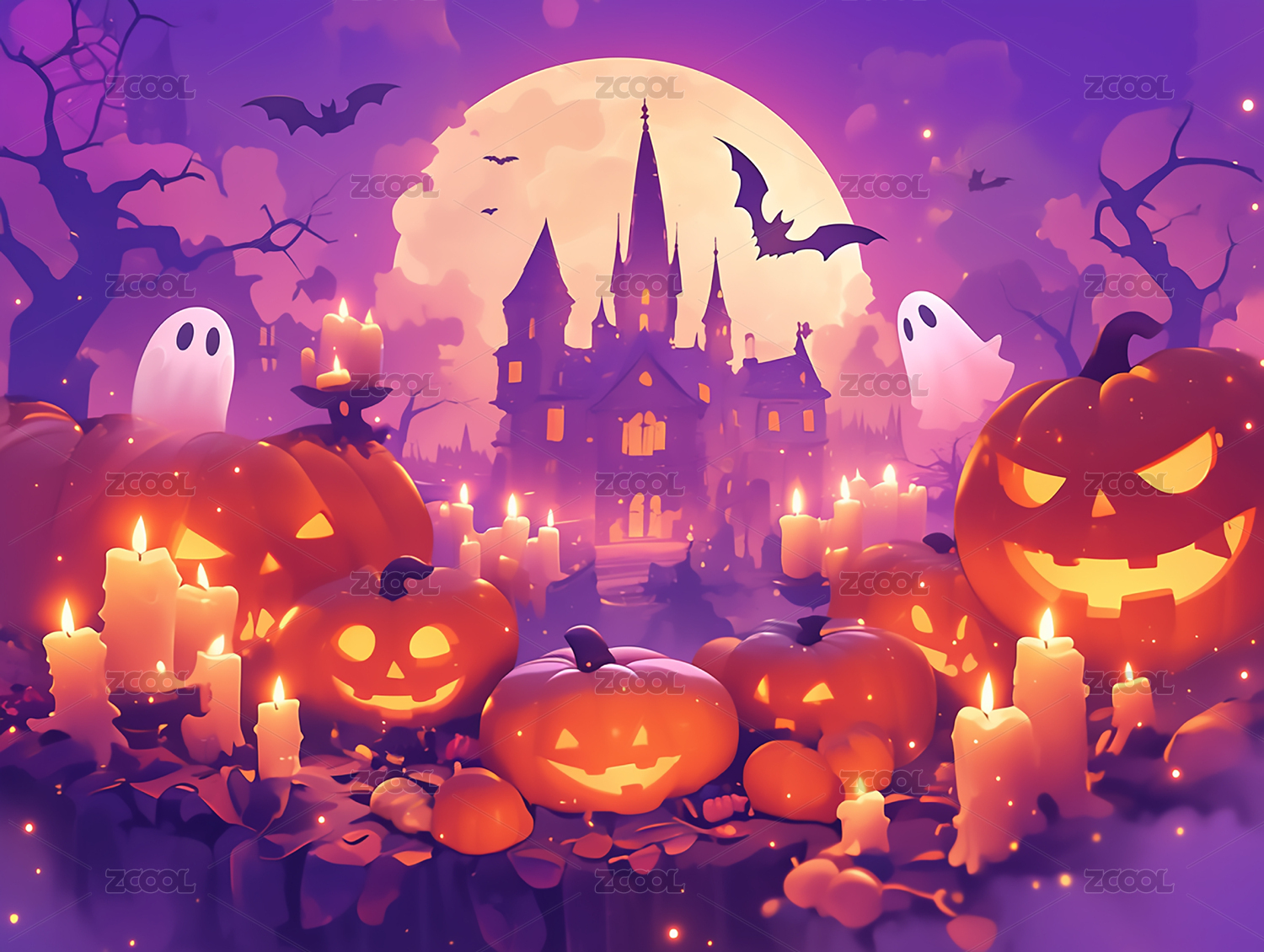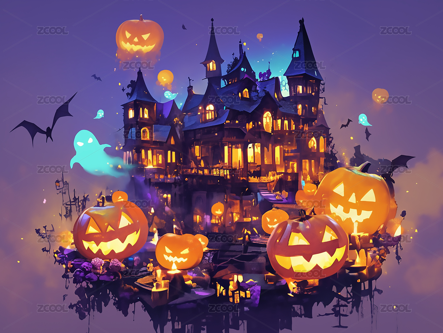 空心南瓜灯,万圣节,万圣节装扮,城堡,蜡烛,蝙蝠,气氛,装扮,节日,庆祝