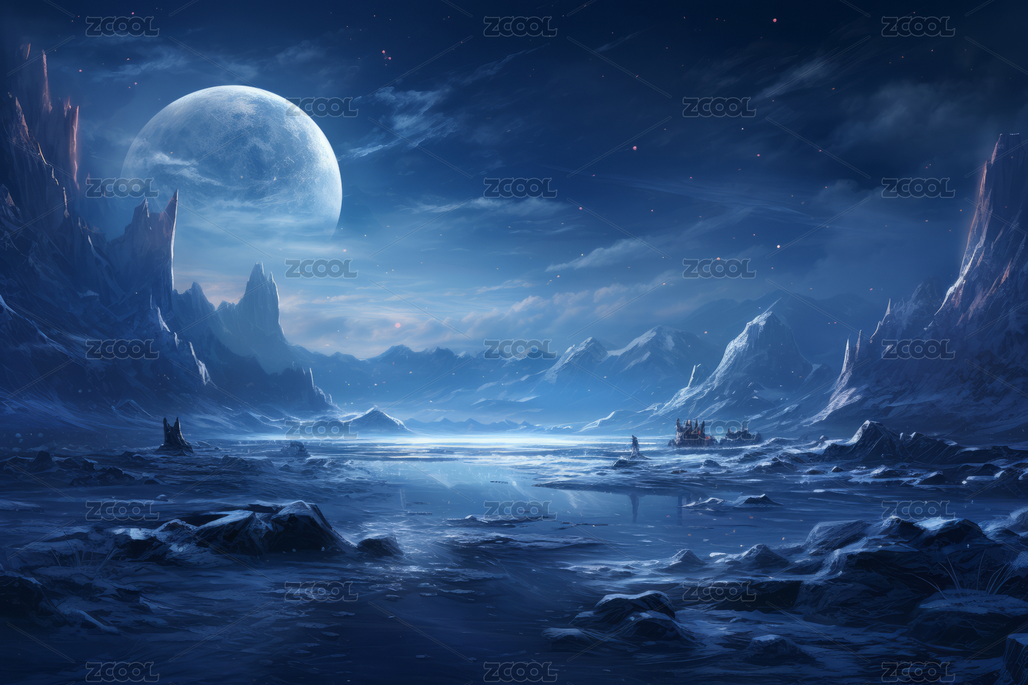 数码科技超现实月亮雪山海报背景