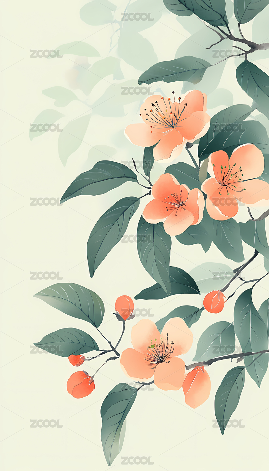 淡雅春日桃花图