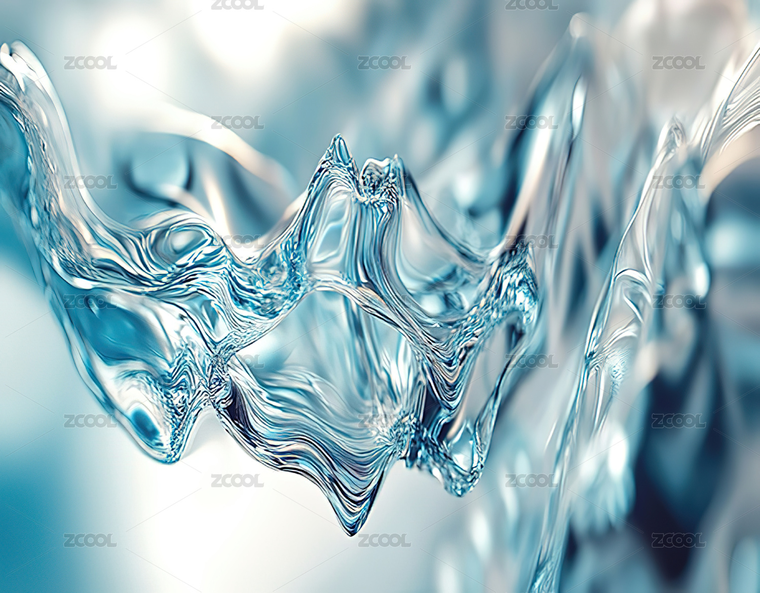 晶莹反射光影起伏波浪流淌透明液体3d插画