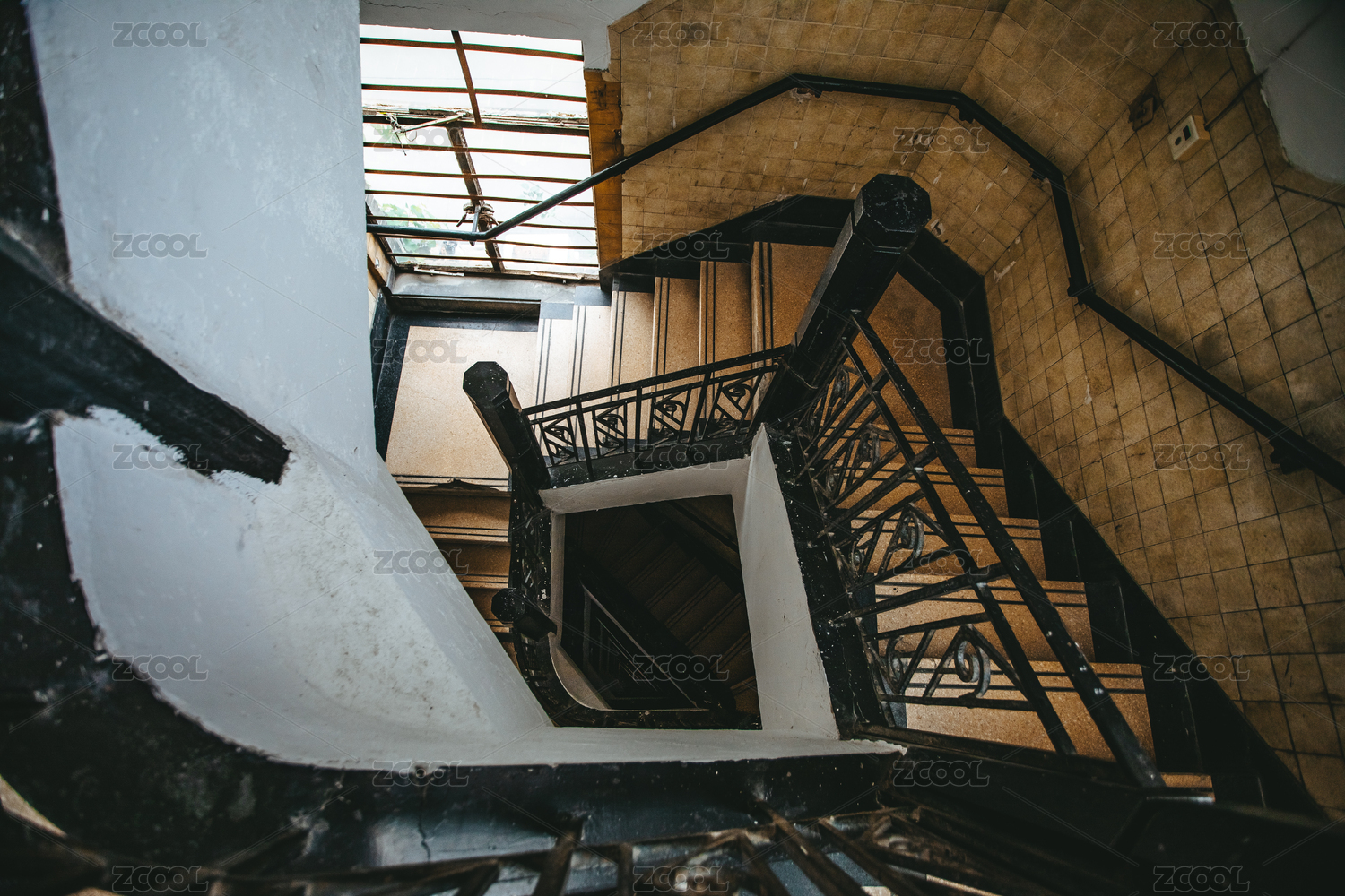 旋转的方形楼梯俯拍