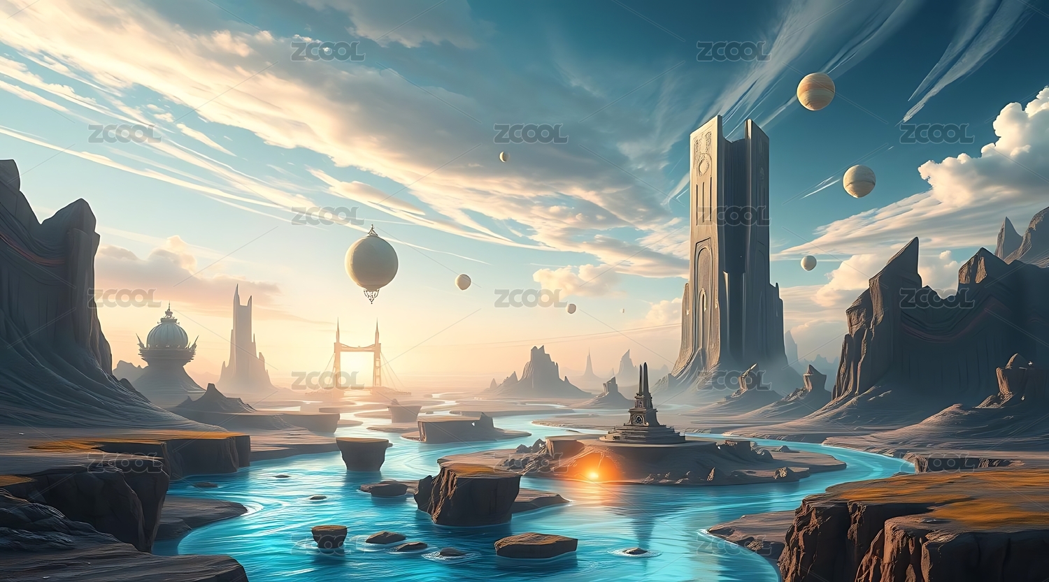 现代,建筑,简约,3D,天空,落日,晚霞,云,城市,未来感
