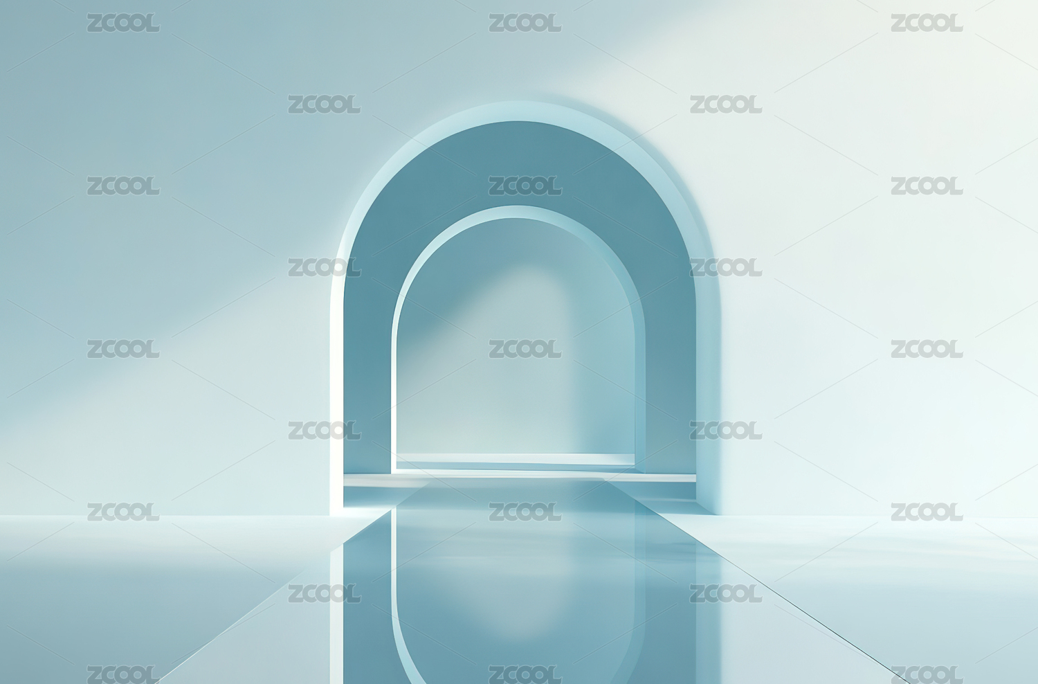 蓝色背景下的双层拱门结构