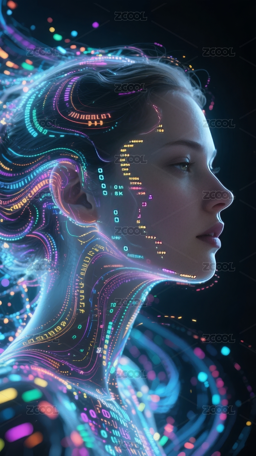 炫彩粒子构成的女性侧脸艺术图
