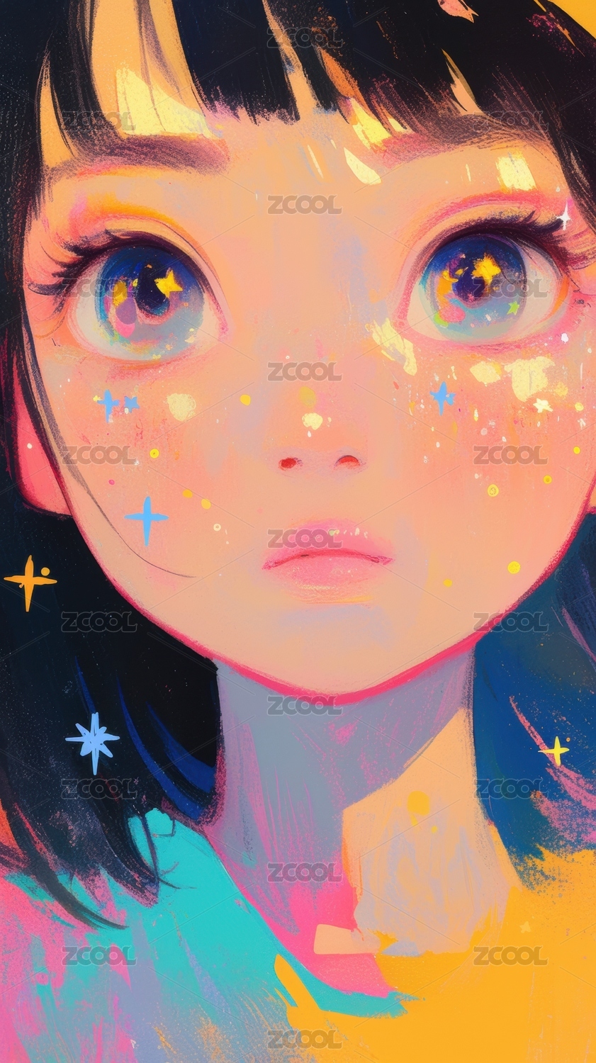 梦幻色彩的动漫少女肖像