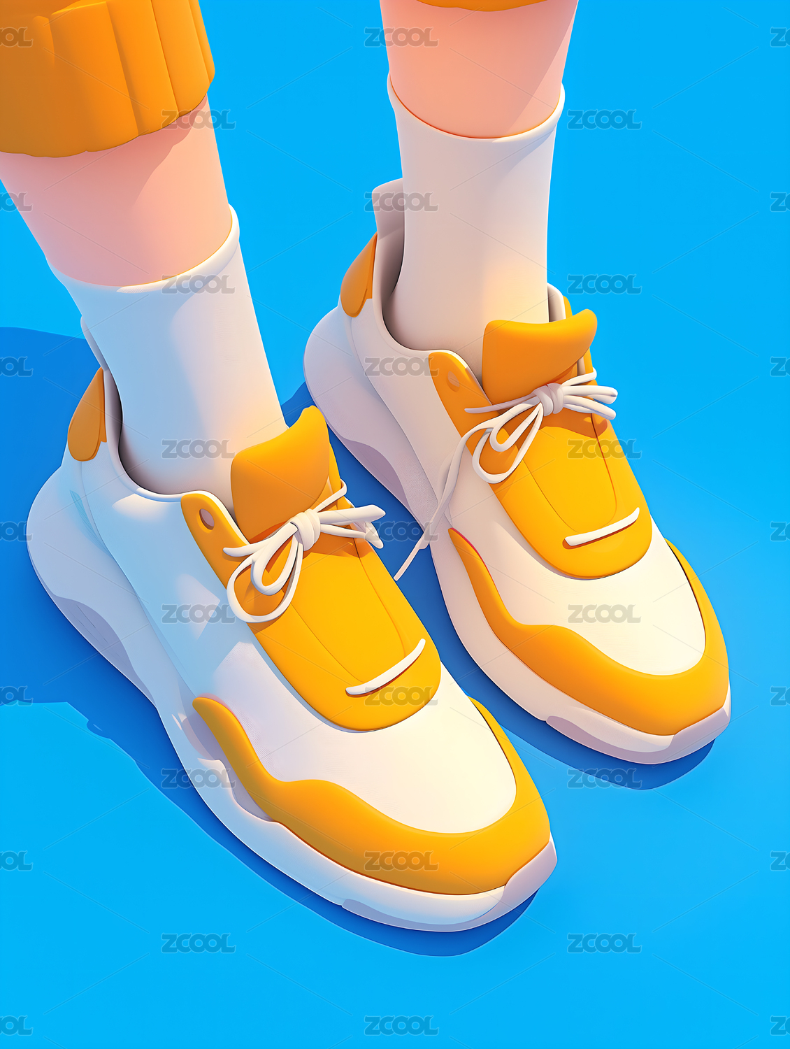 简单明亮脚上一双彩色条纹的长筒袜绘画插画