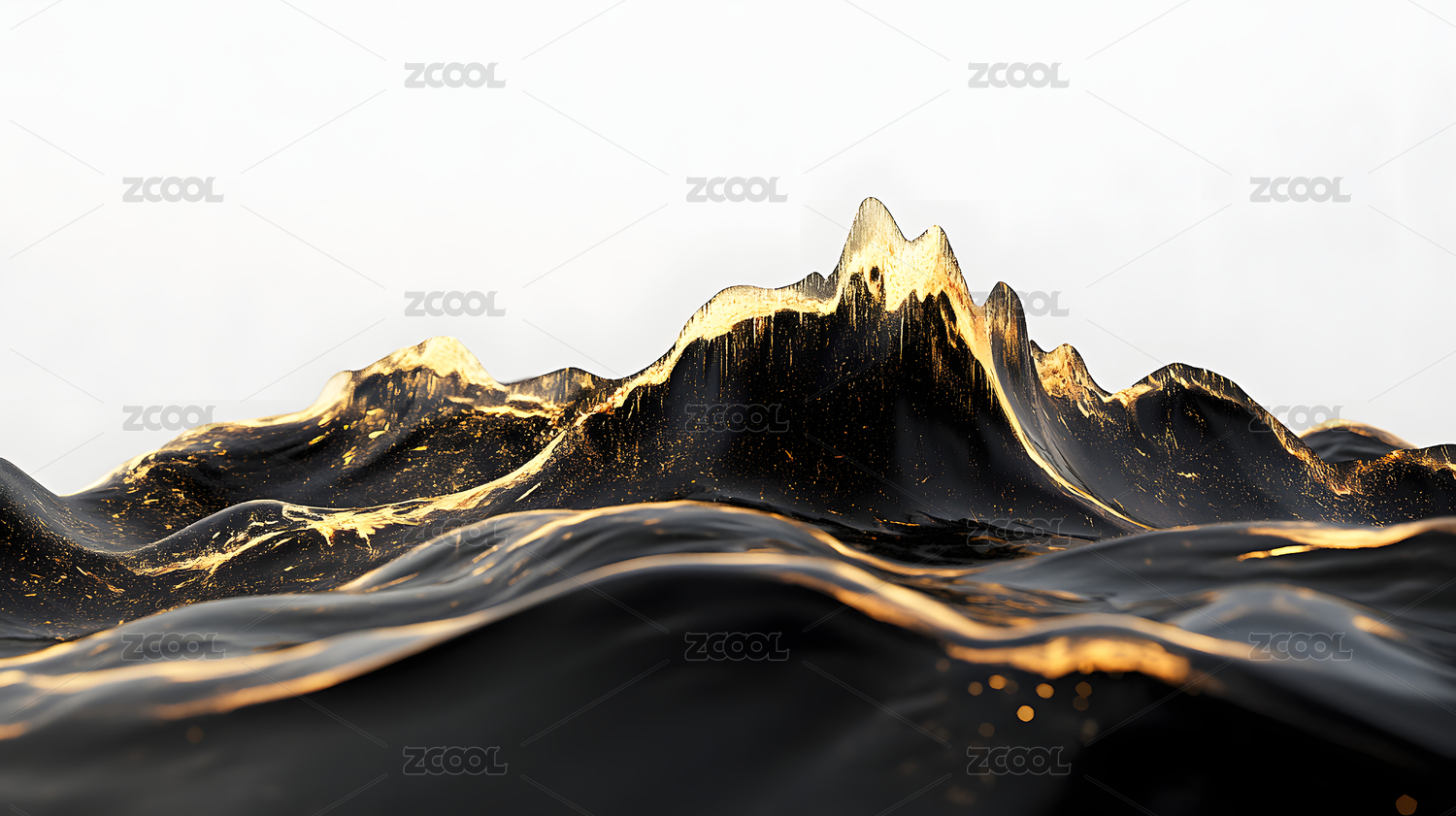 黑底抽象黑金色颜料山峰海浪流体3D立体