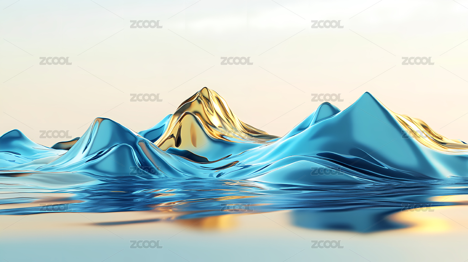 水面上的金色立体波浪山脉
