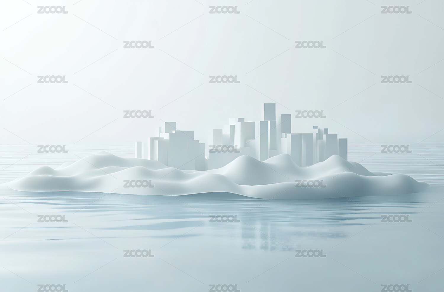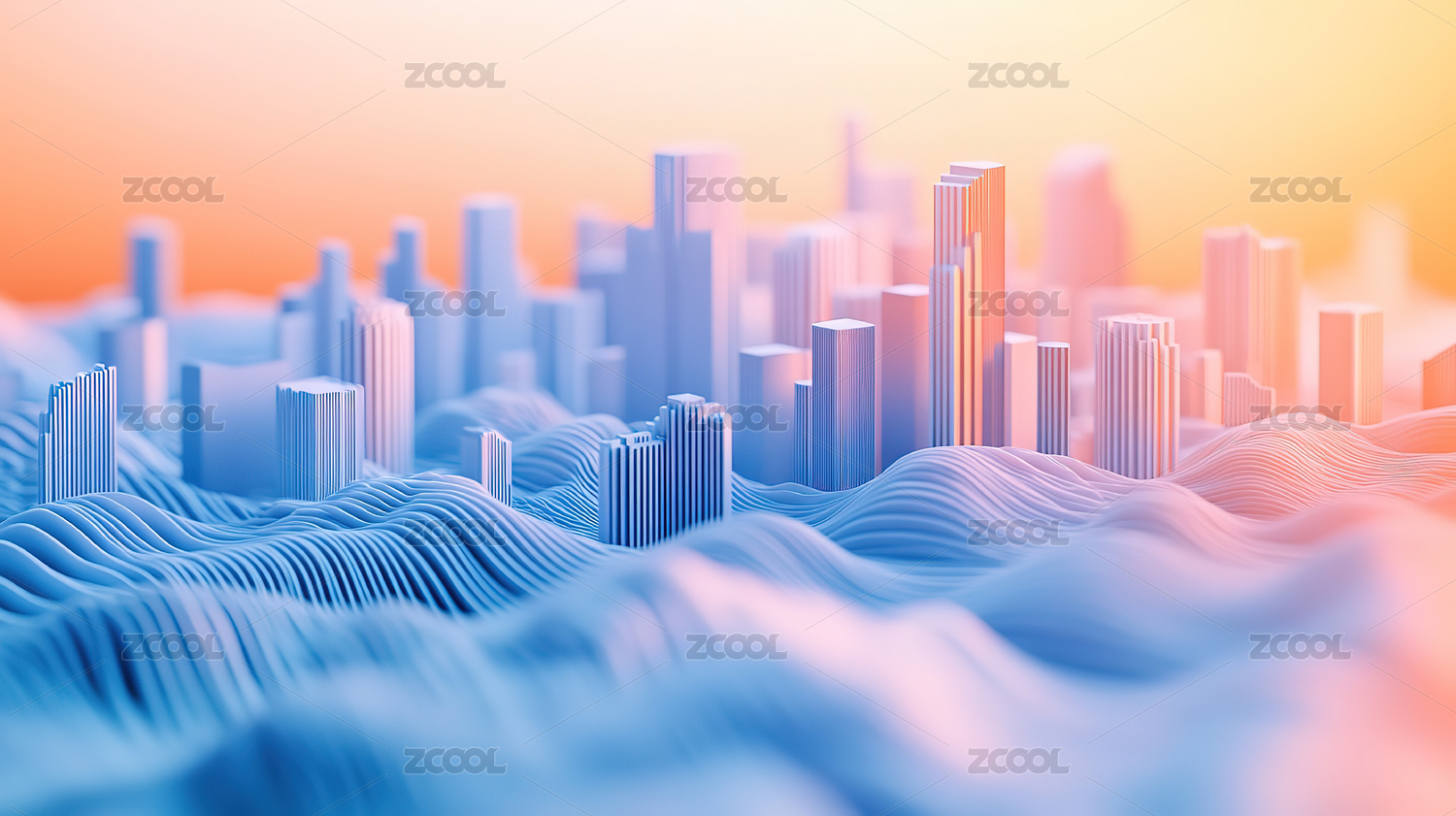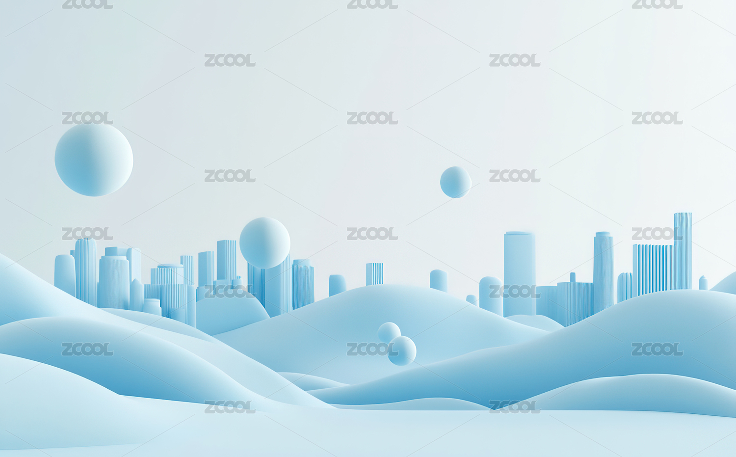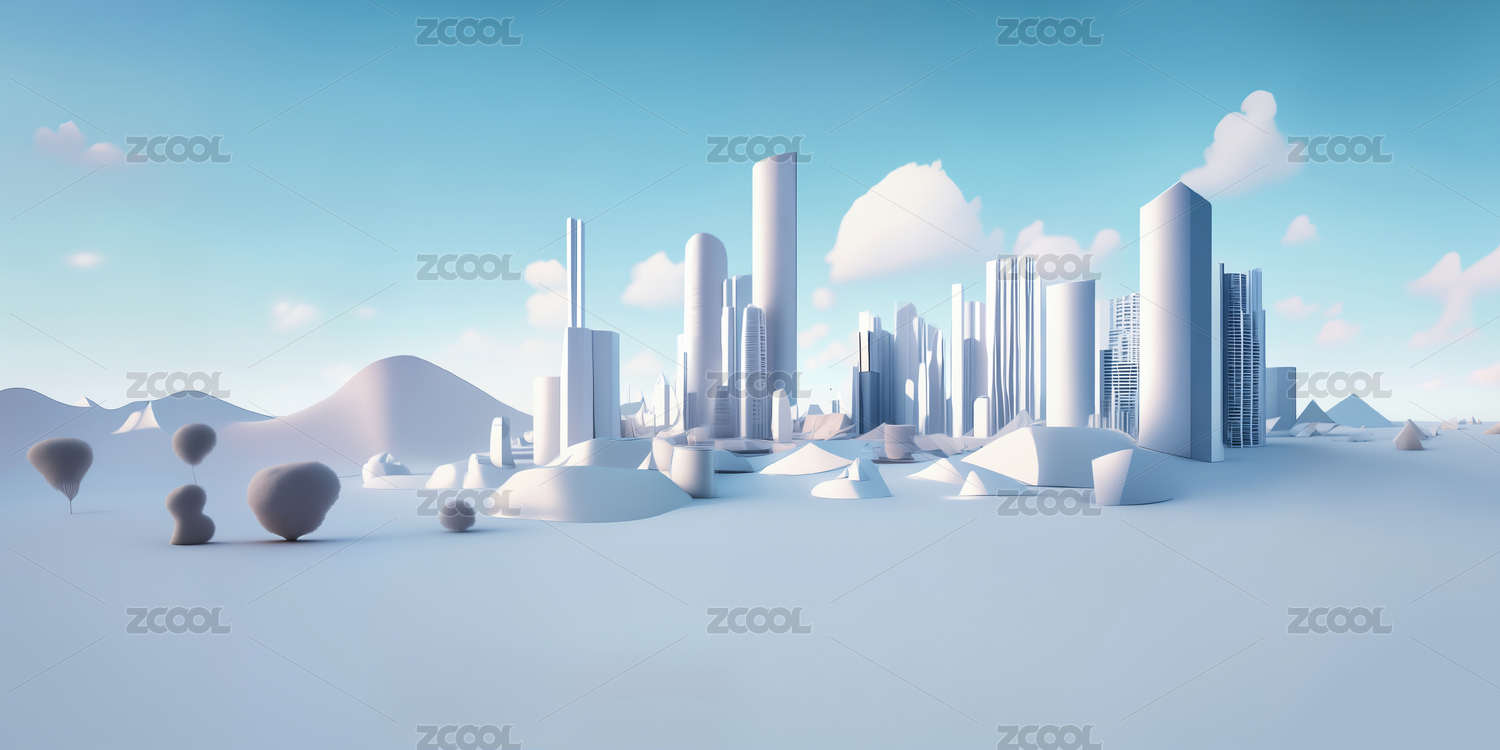 清新淡雅现代城市模型沙盘3D卡通立体插画
