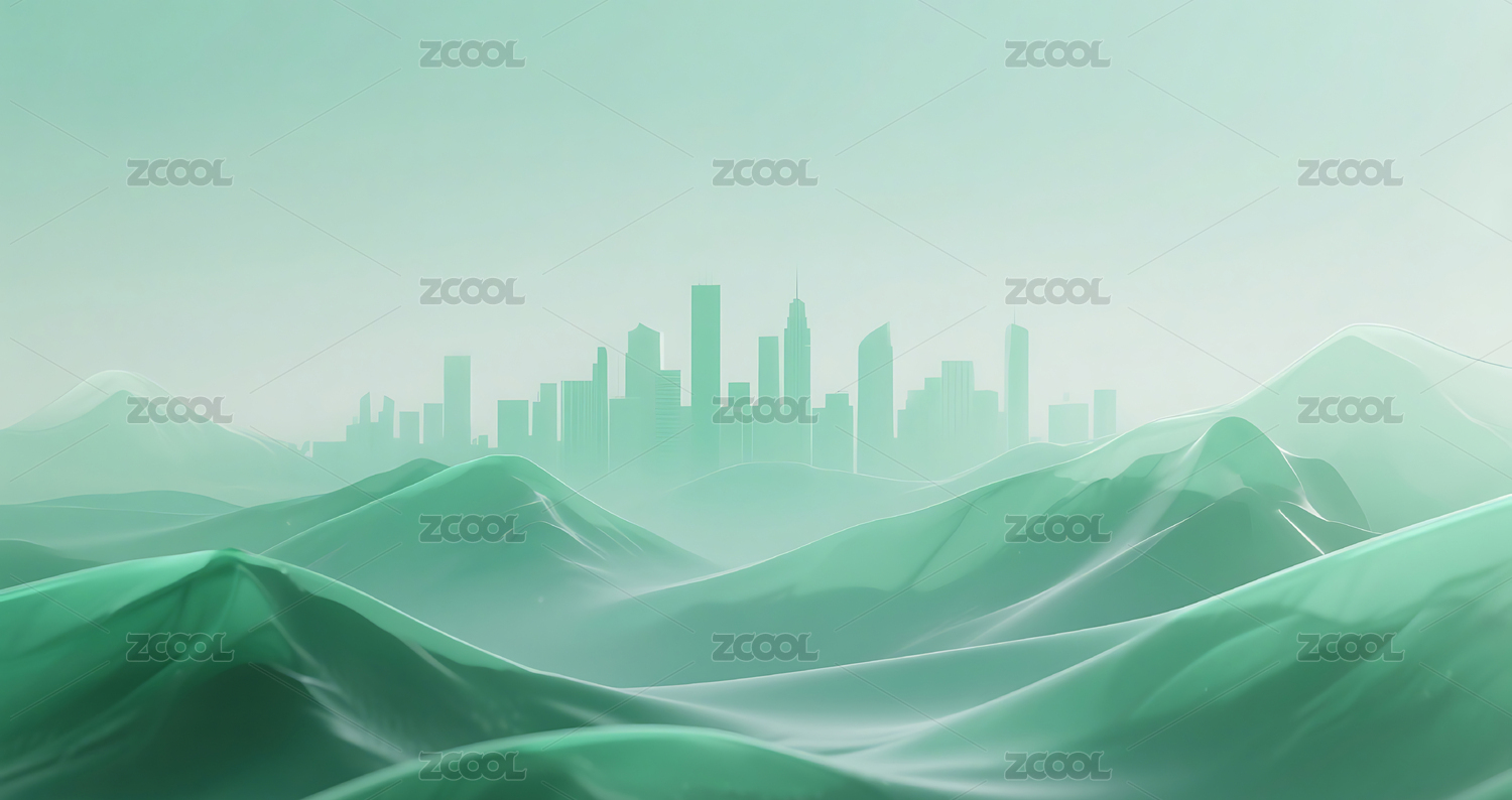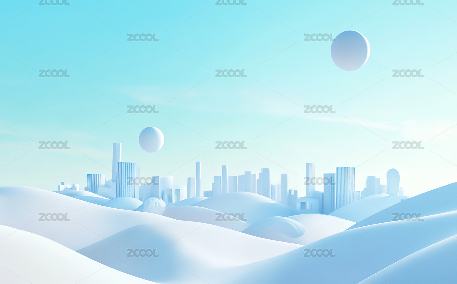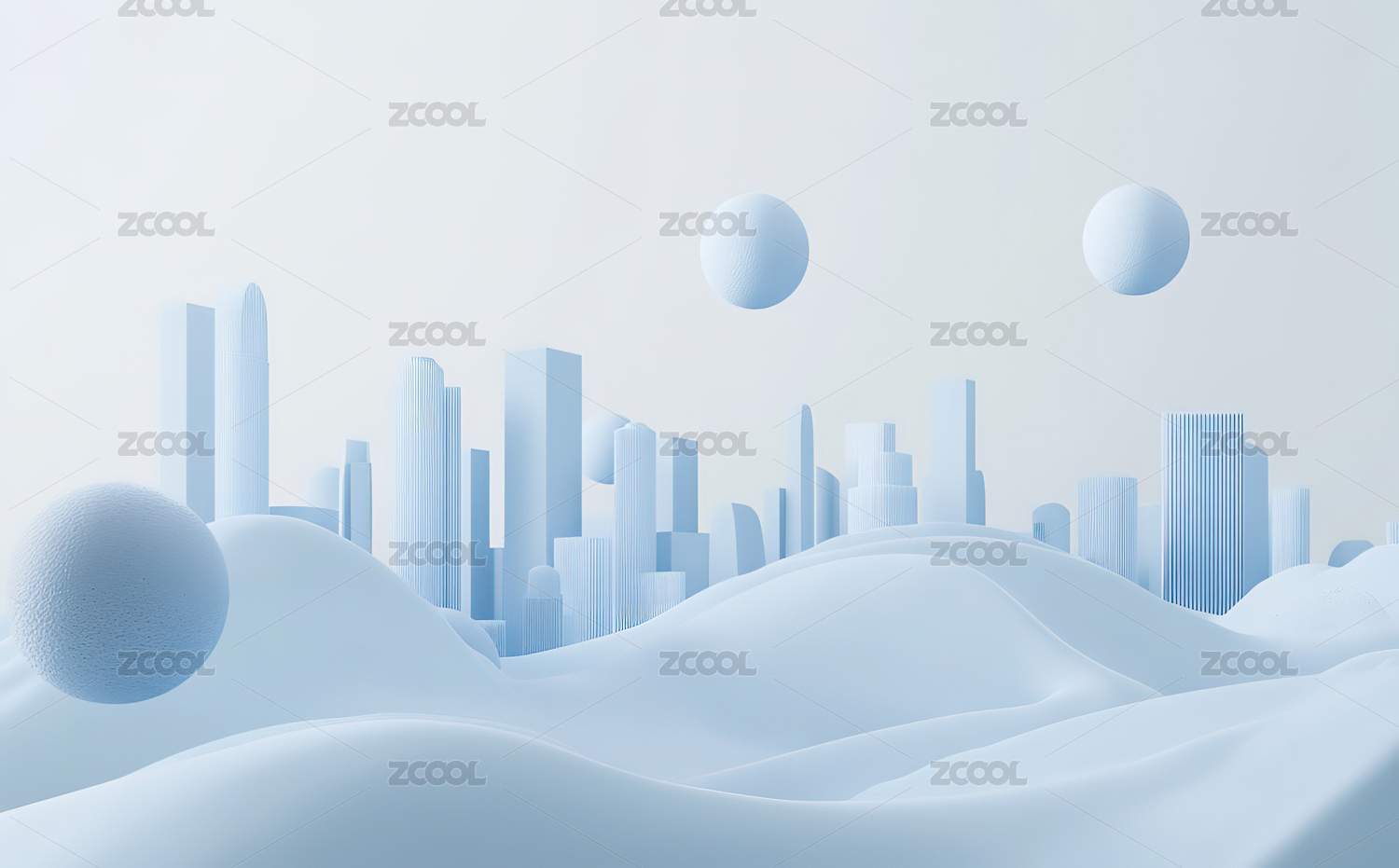 清新淡雅现代城市模型沙盘3D卡通立体插画