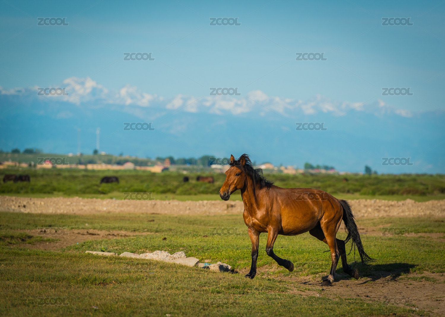 中国新疆草原中的一匹马