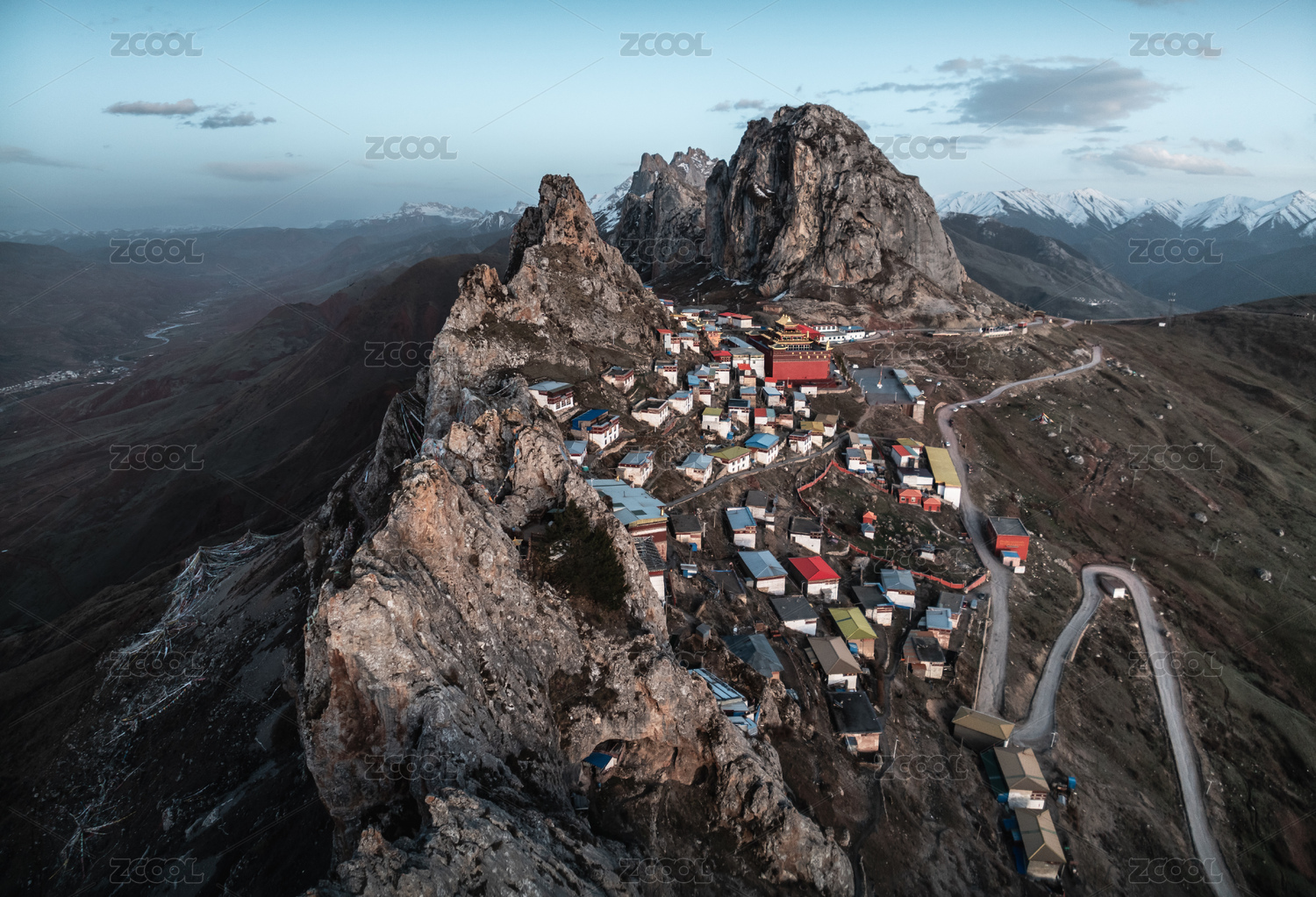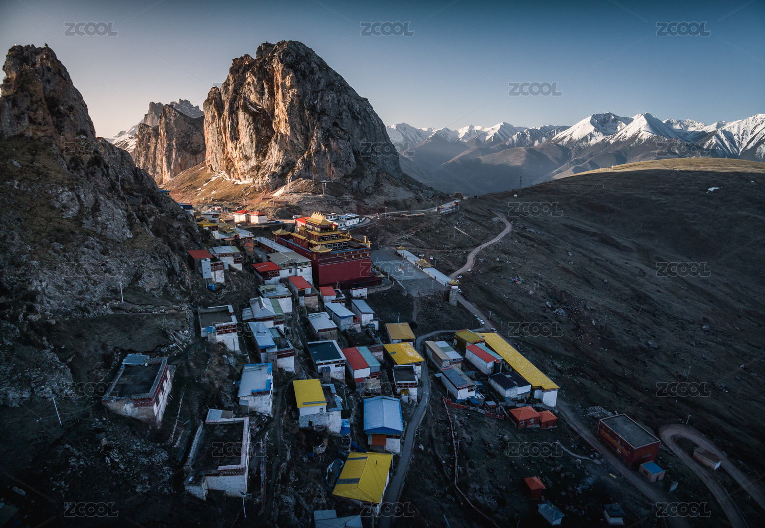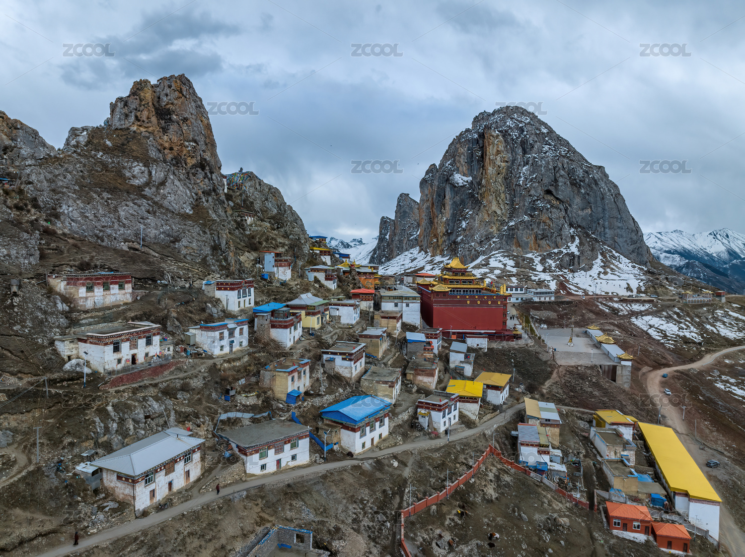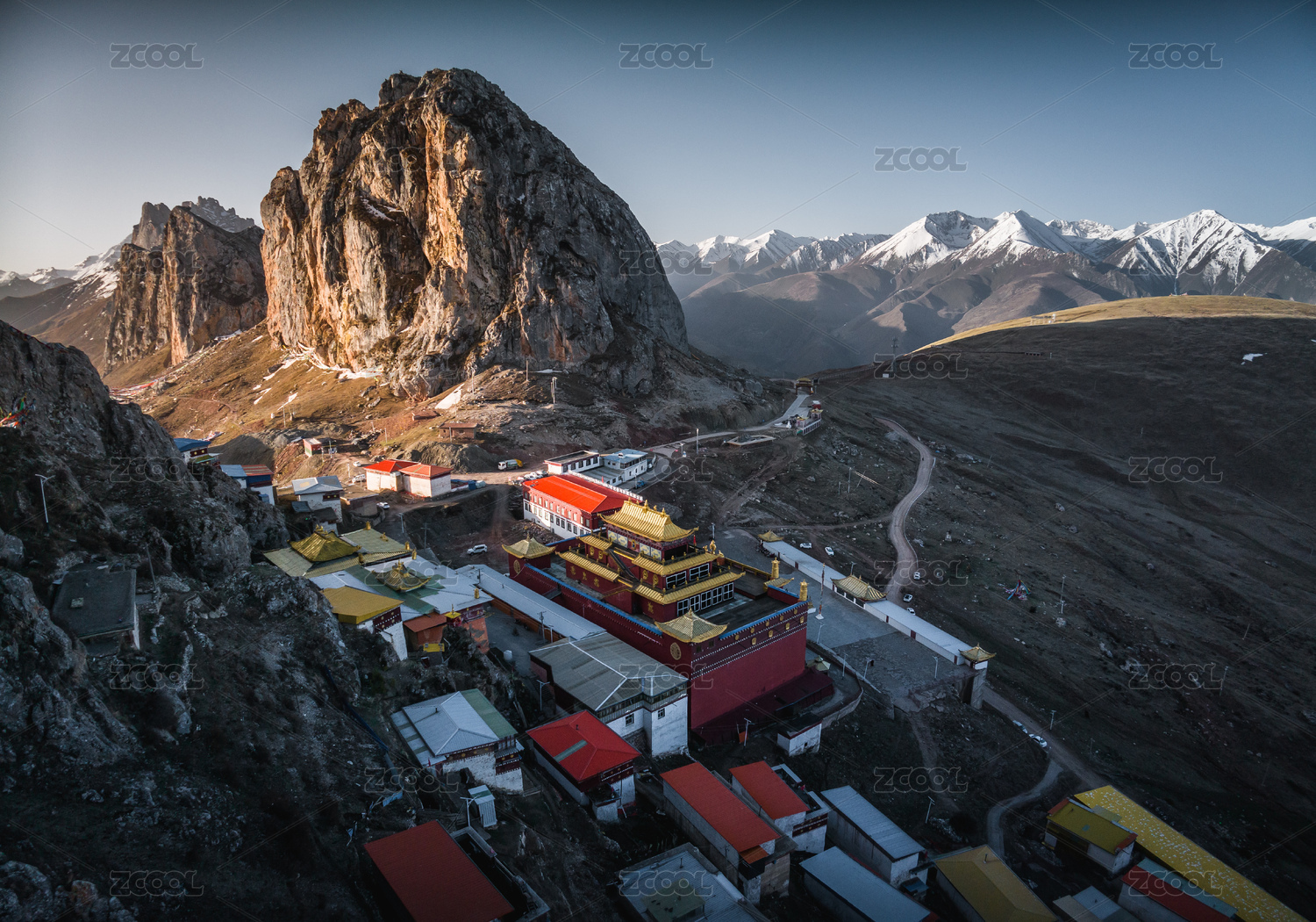 中国西藏丁青县孜珠山上高原寺庙孜珠寺航拍