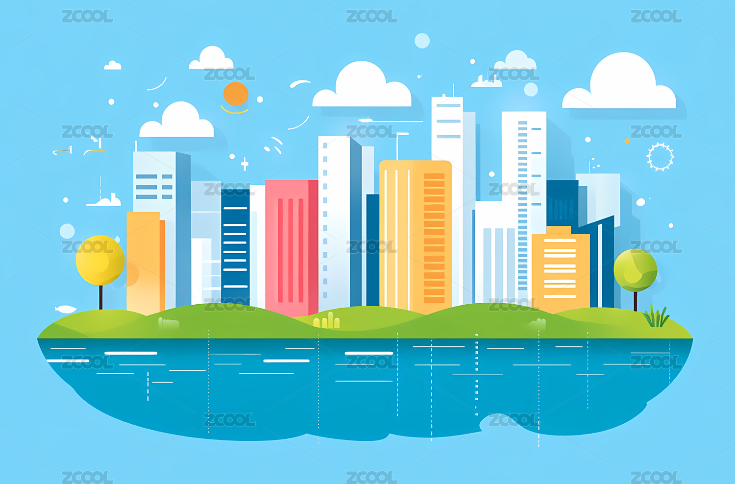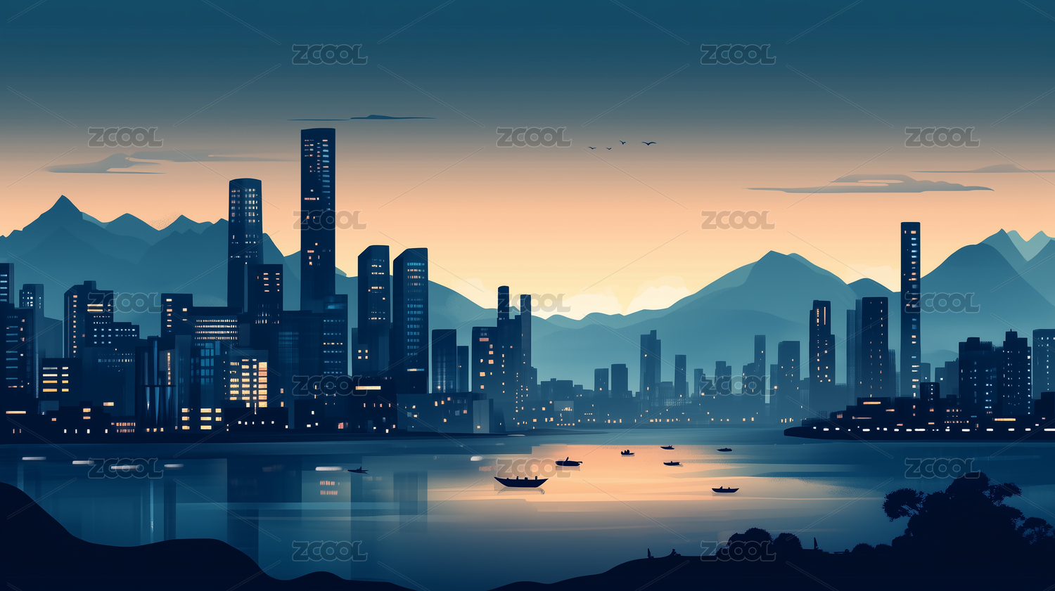极简扁平风城市天际线插画
