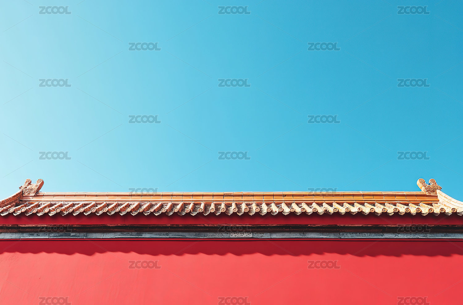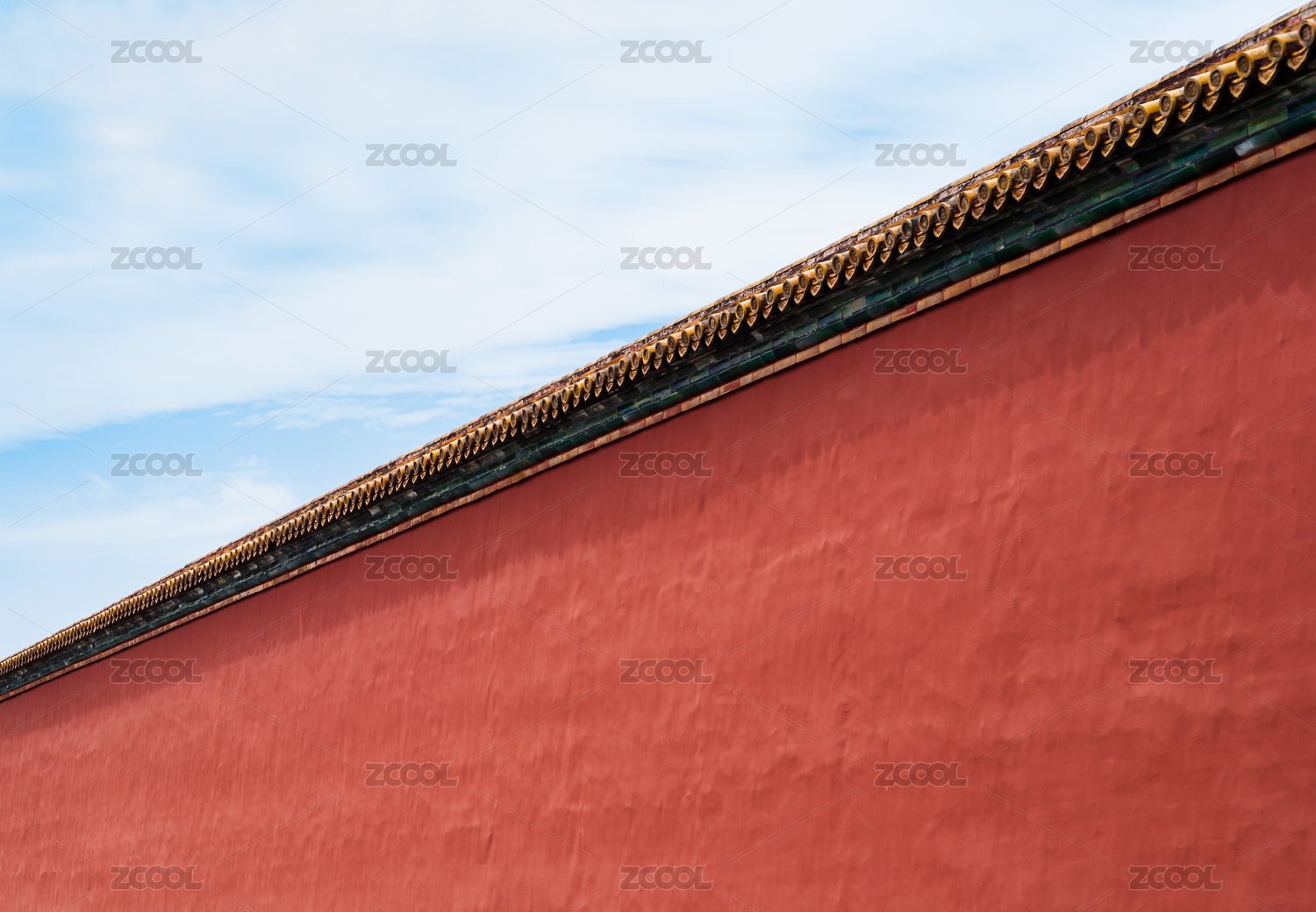 北京故宫博物院的红墙和琉璃瓦屋顶