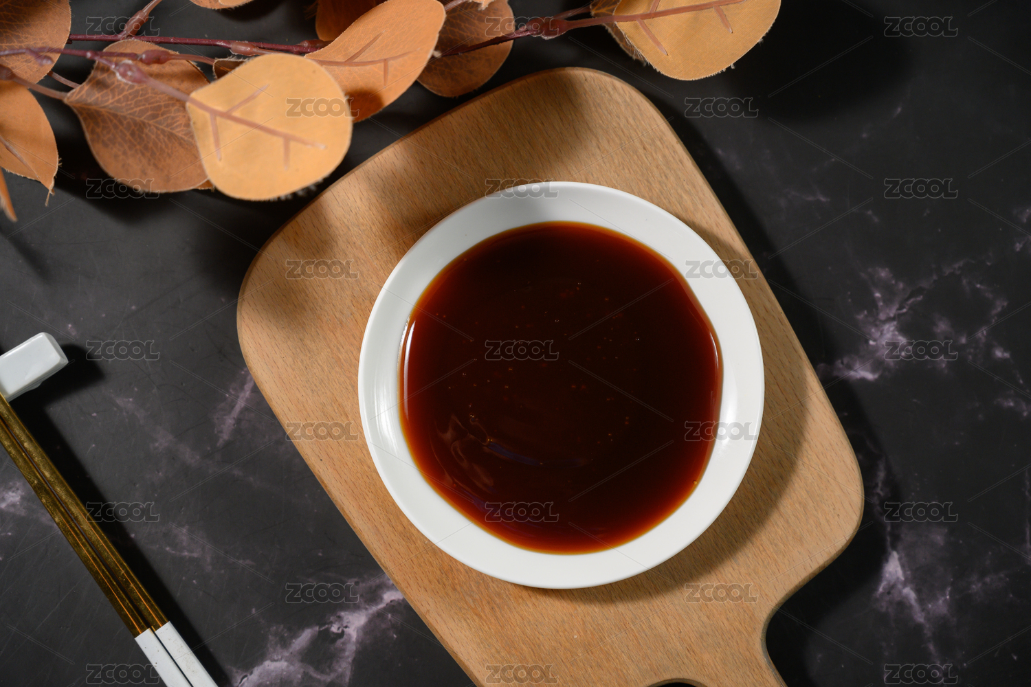 桌面上的盘子里的美味可口的冰花酸梅酱