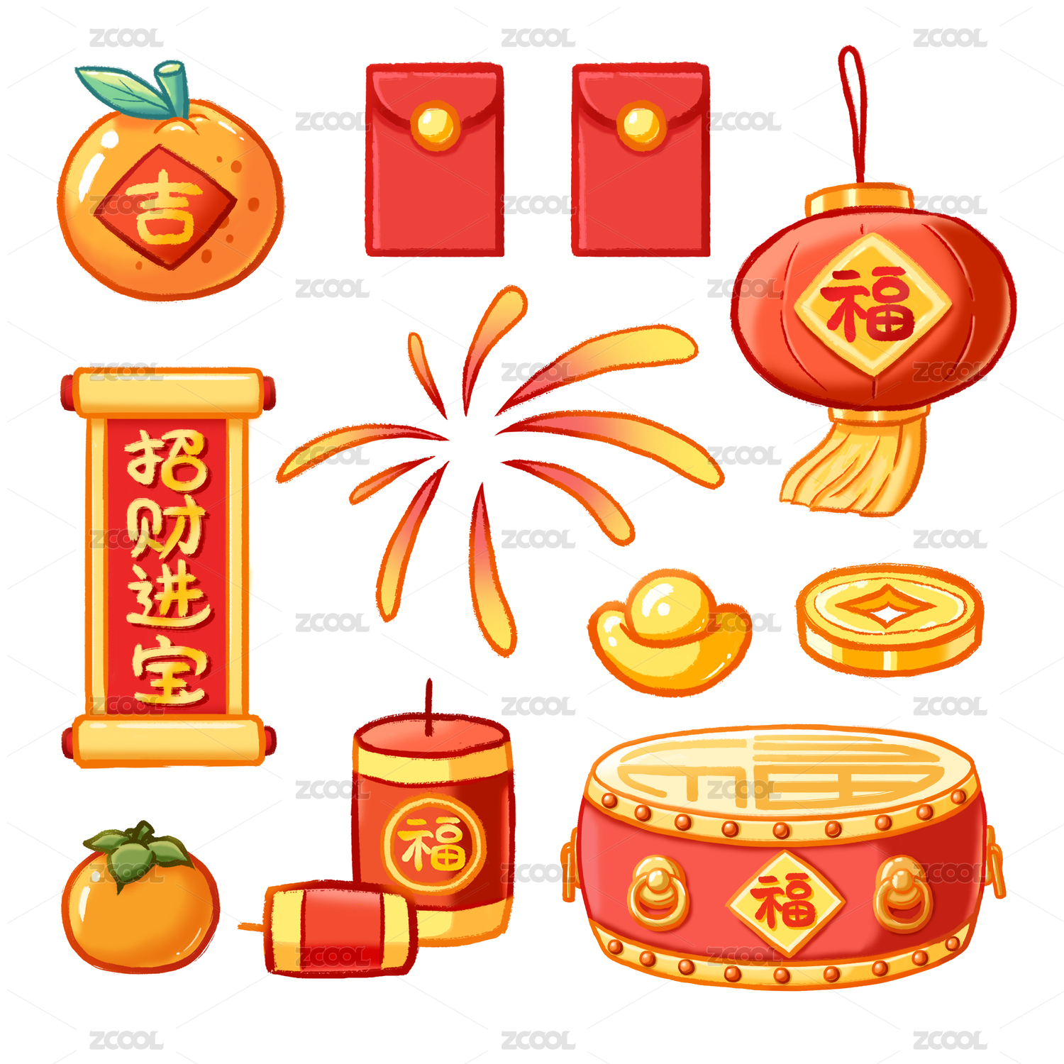 白色背景上的春节元素素材