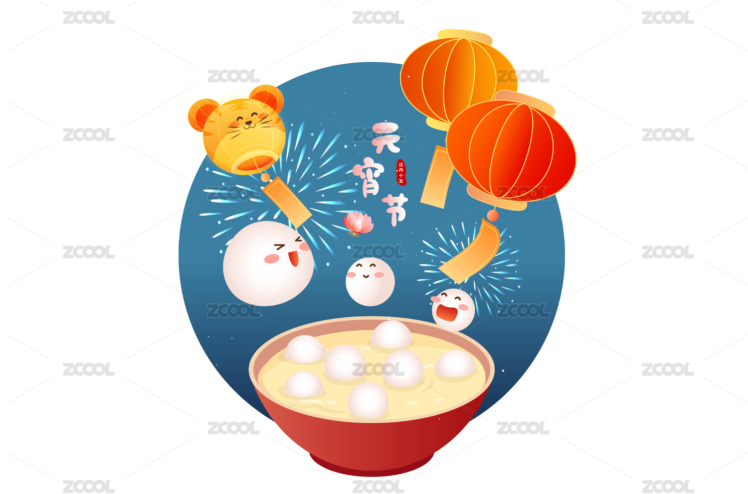 各种可爱的元宵矢量插画