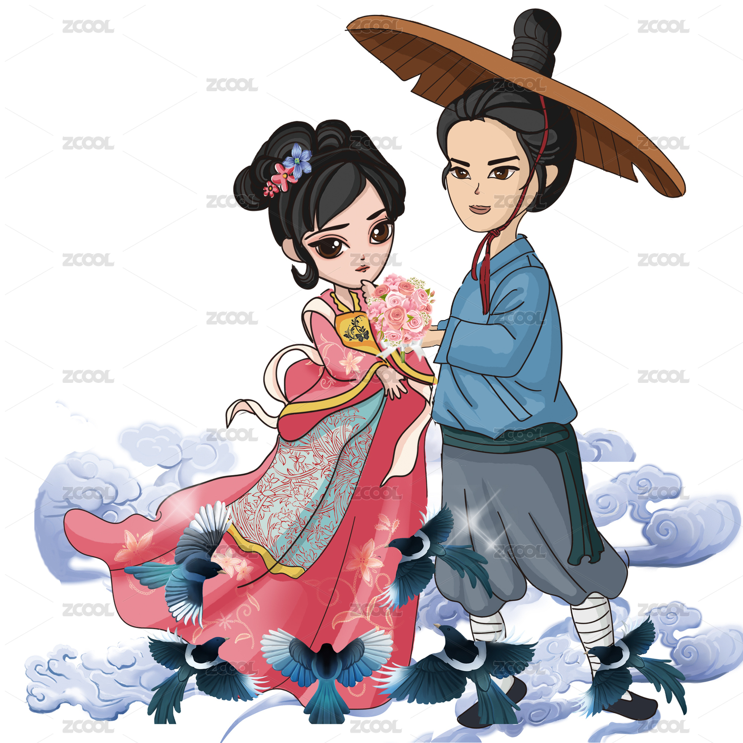 矢量婚庆恭喜发财新郎新娘小夫妻卡通情侣