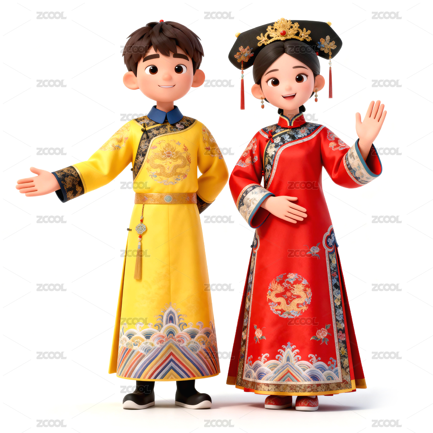 中国历代服装发饰发展图矢量图可爱卡通清代