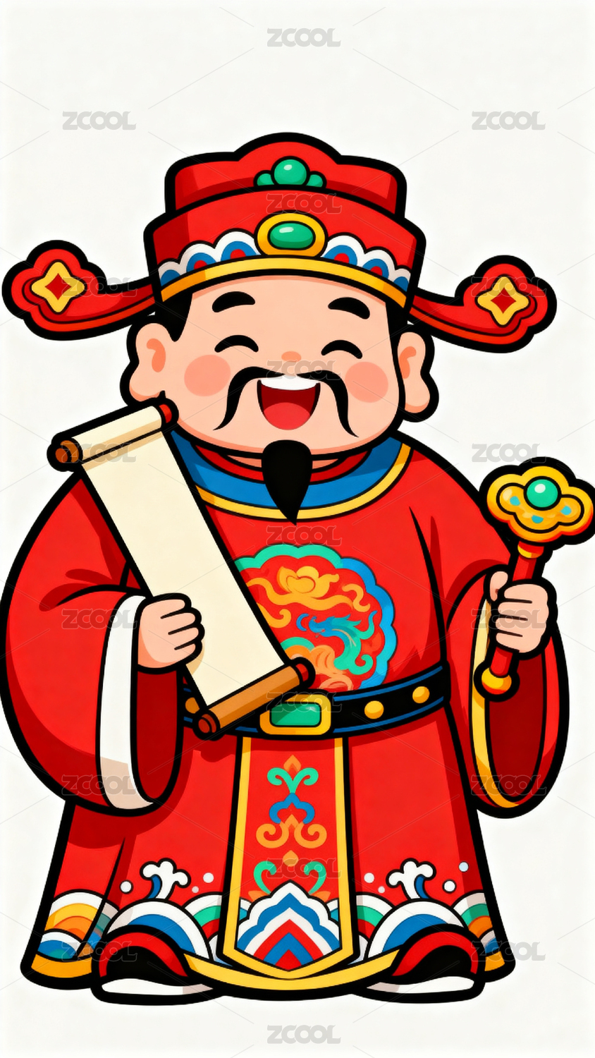 插画,国潮,元宝,恭喜发财,财源滚滚,红包,招财进宝,财神,财神爷,神仙