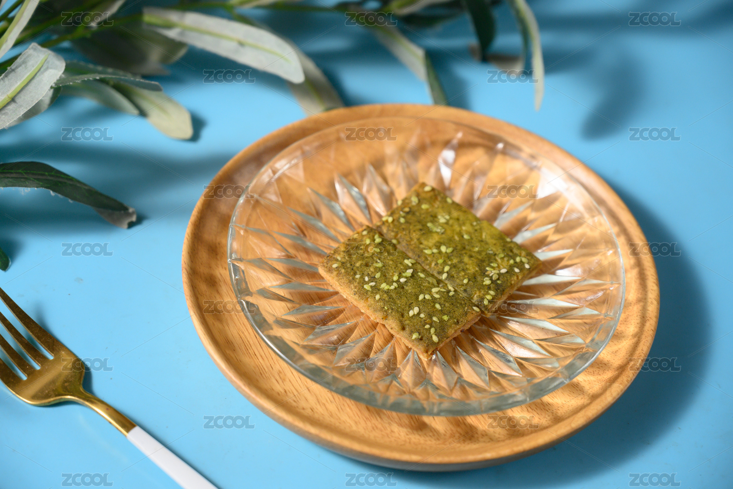 桌面上的盘子里的美味可口的海苔千层饼