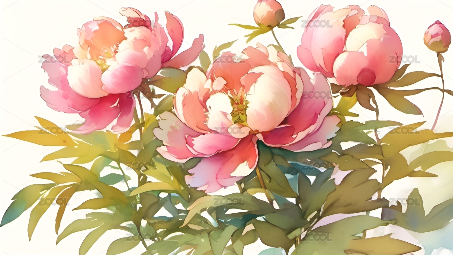 水彩风格花卉之牡丹花