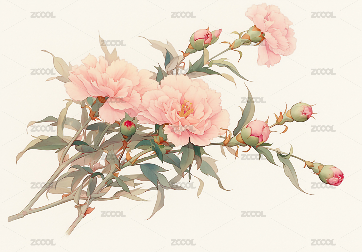 水彩粉嫩花朵枝条唯美意境