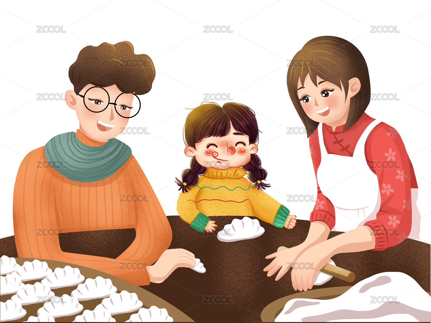 中秋节家人团圆朋友吃饭聚餐美食促销插画
