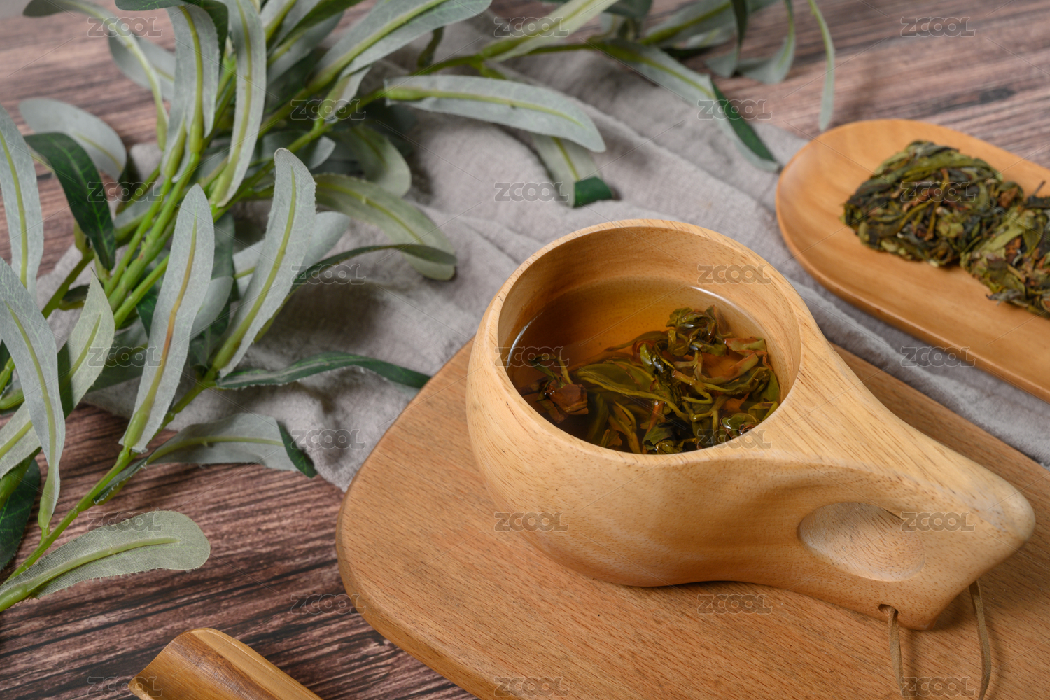 桌面上的杯子里的甘甜可口的雀舌茶