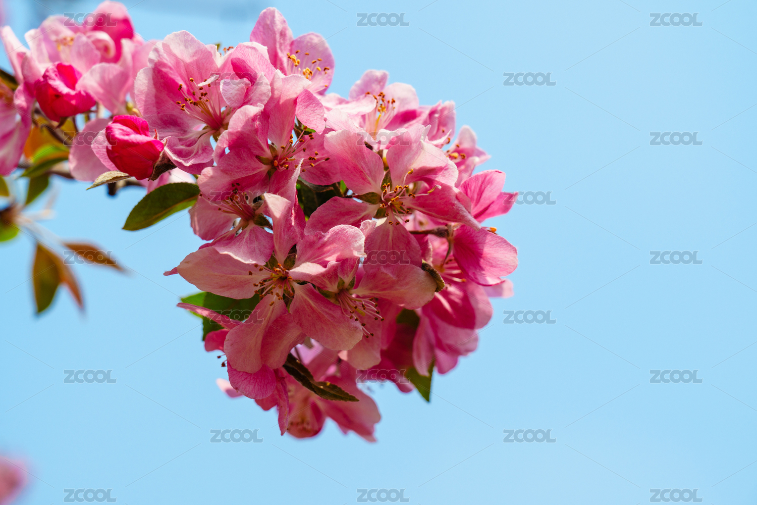 植物园,海棠,春天,阳光,蓝天,天空,绿叶,树枝,花蕊,粉色