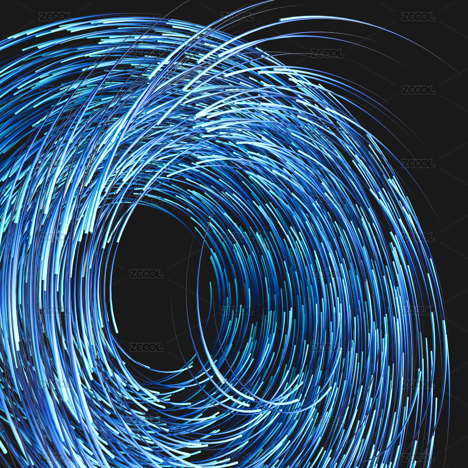 蓝色旋转的漩涡和流动的线条,三维渲染